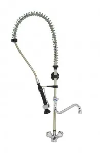 The commercial spray-off unit features both hot and cold taps, providing versatile temperature control for various cleaning tasks. It includes a 12-inch faucet that allows you to fill the sink independently without the need to hold the spray lever, ensuring convenience and efficiency in your kitchen operations.