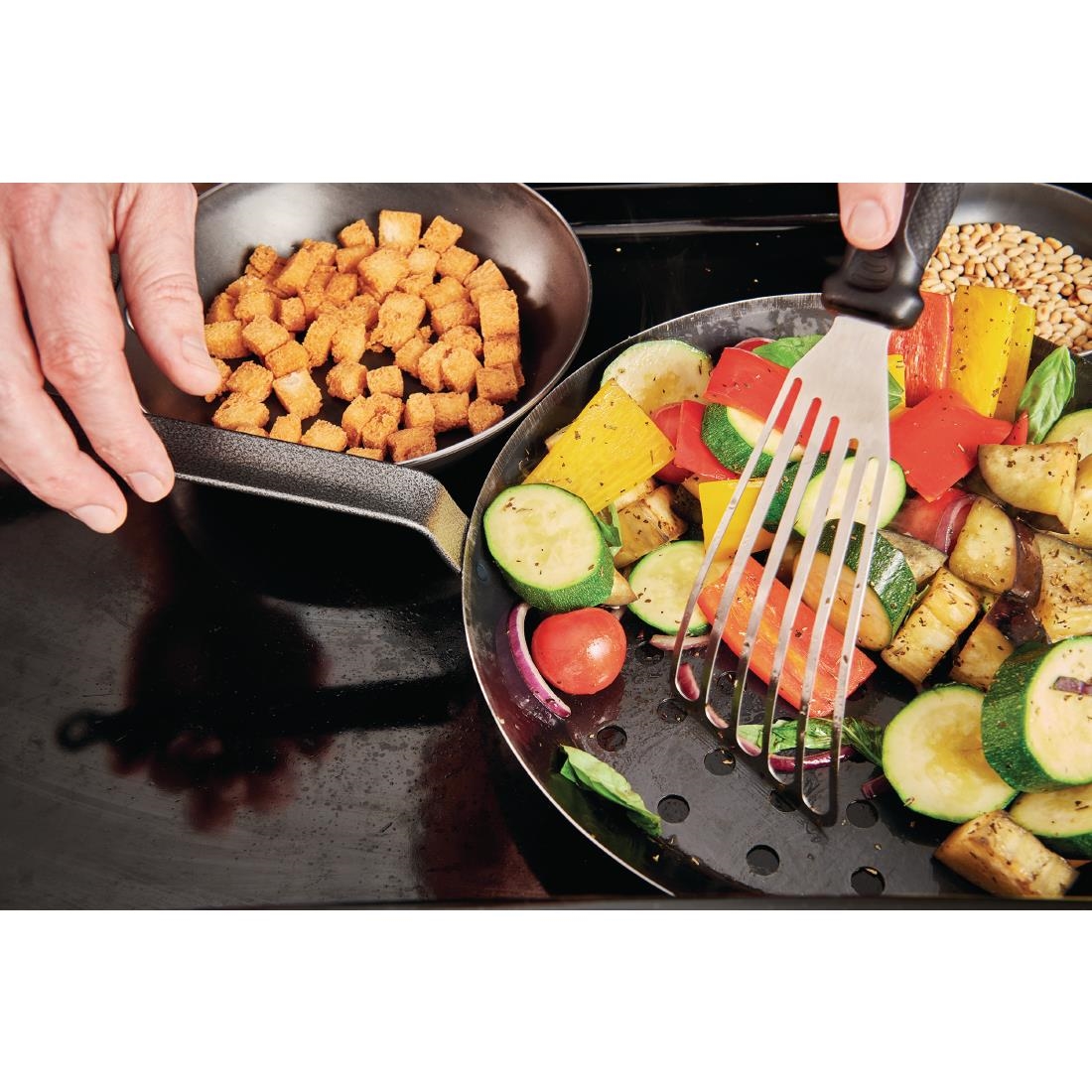 Introduce versatile and hardwearing utensils to your kitchen with this De Buyer slotted food turner. Made from forged stainless steel, the turner benefits from excellent durability that keeps it in as-new condition throughout many uses to come.