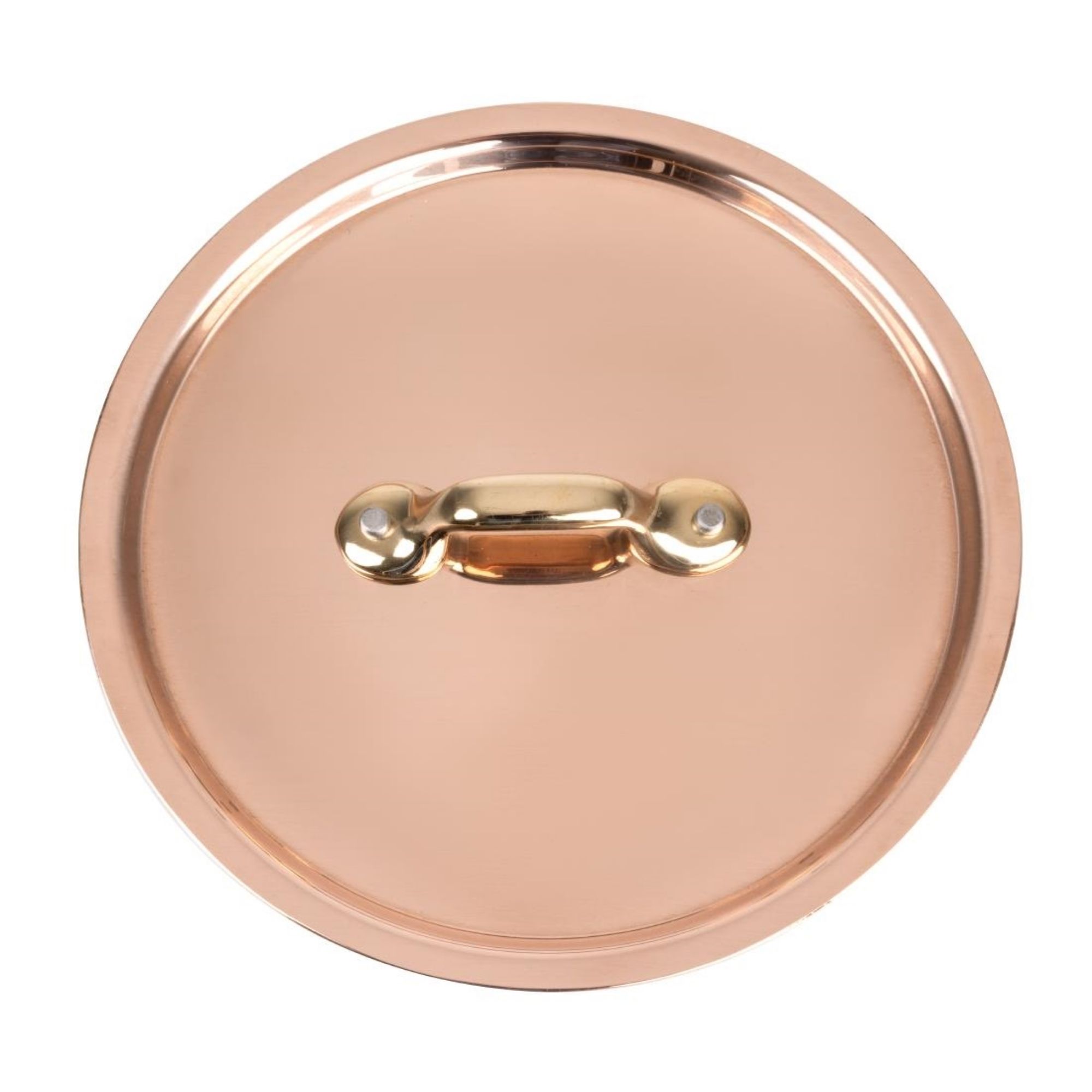 This De Buyer premium copper pan lid also includes a brass handle for an elegant and classic finish.