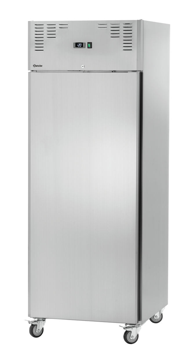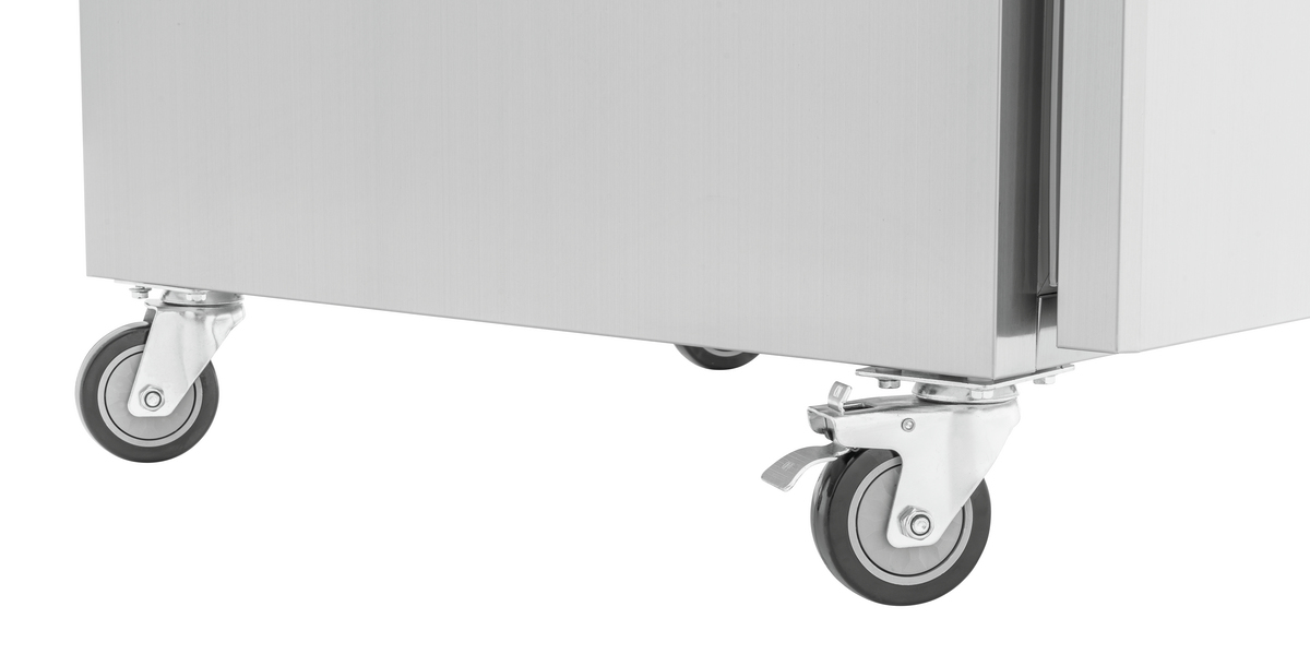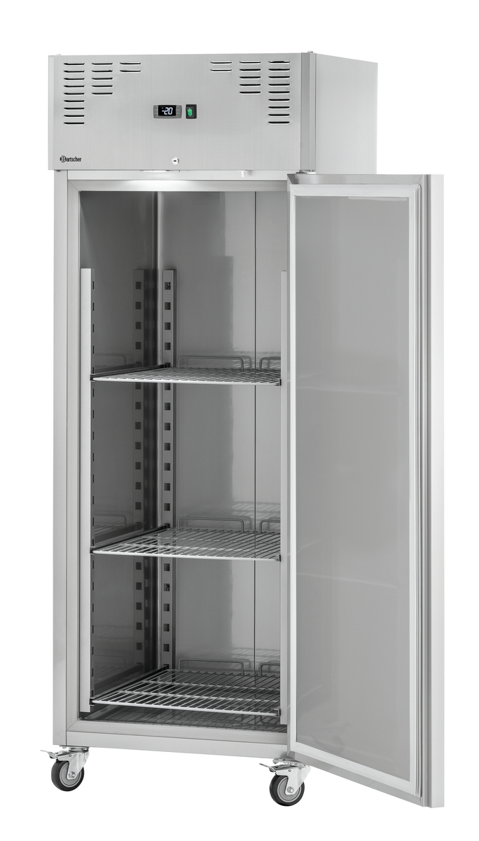 Thanks to the generous space offered by this appliance, frozen goods can be stored and kept so that they are easy to find on the height-adjustable grills in 2/1 GN format. The powerful forced-air cooling system of the stainless steel freezer ensures an even and constant interior temperature despite the size of the appliance.