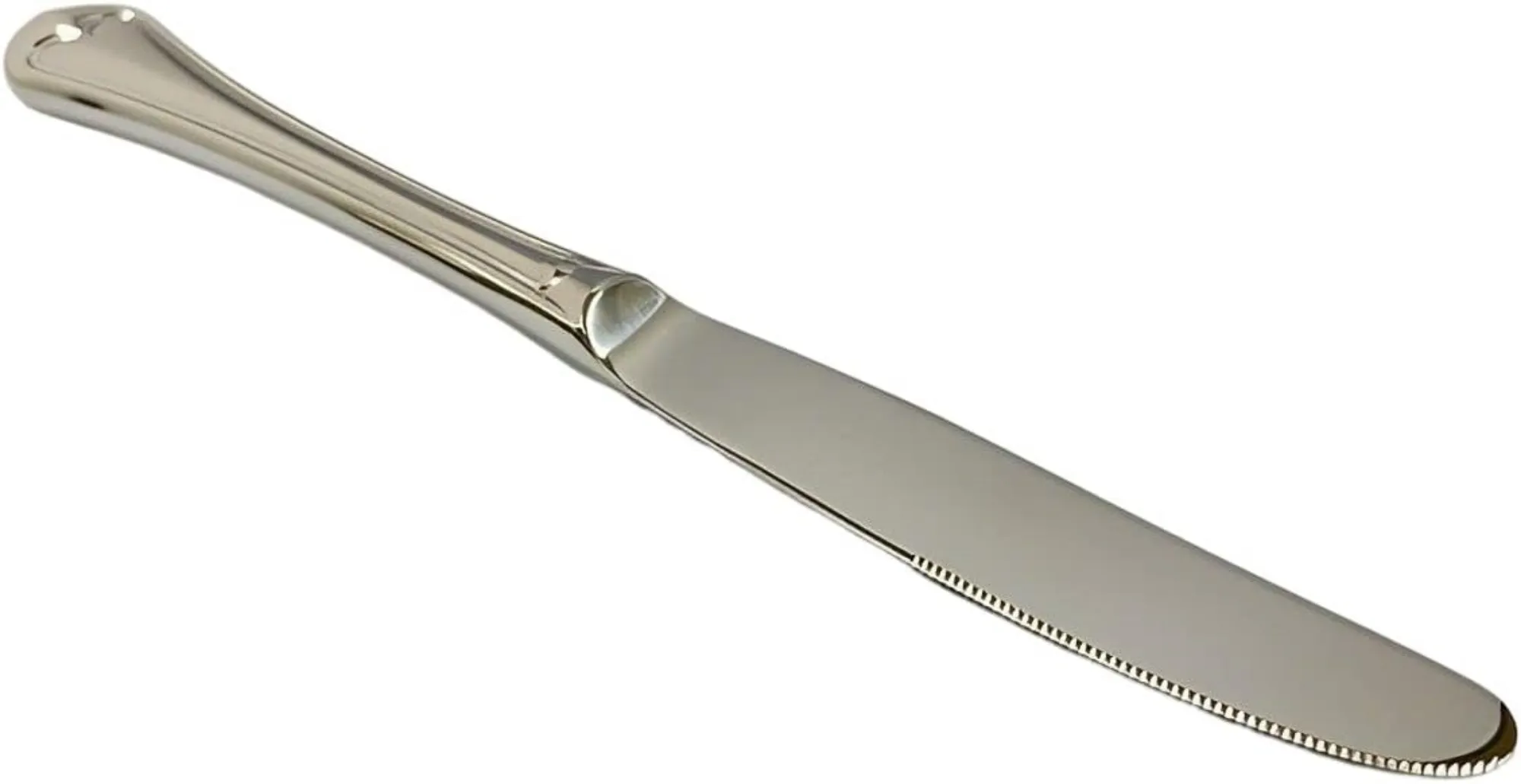 The dessert knife is crafted from high-quality chrome steel, ensuring durability and a sleek appearance. This knife is designed specifically for cutting and enjoying desserts, offering a perfect balance of functionality and elegance. Its polished finish adds a touch of sophistication to any table setting, making it an ideal choice for both casual and formal dining occasions.