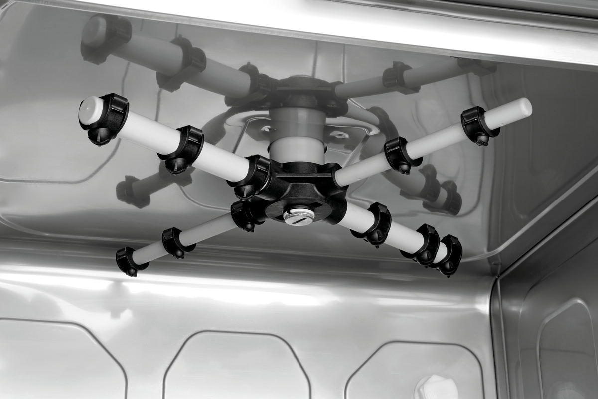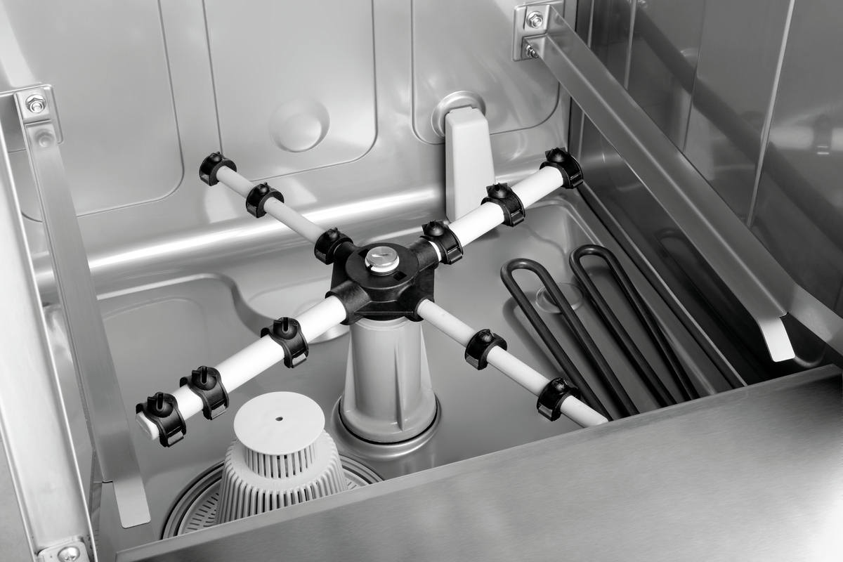 This dishwasher offers excellent washing and rinsing performance and is very user-friendly. It is ideal for use in cafeterias, bars, and cafes. The cold rinse feature can be manually engaged to allow for the quick reuse of glasses after washing.