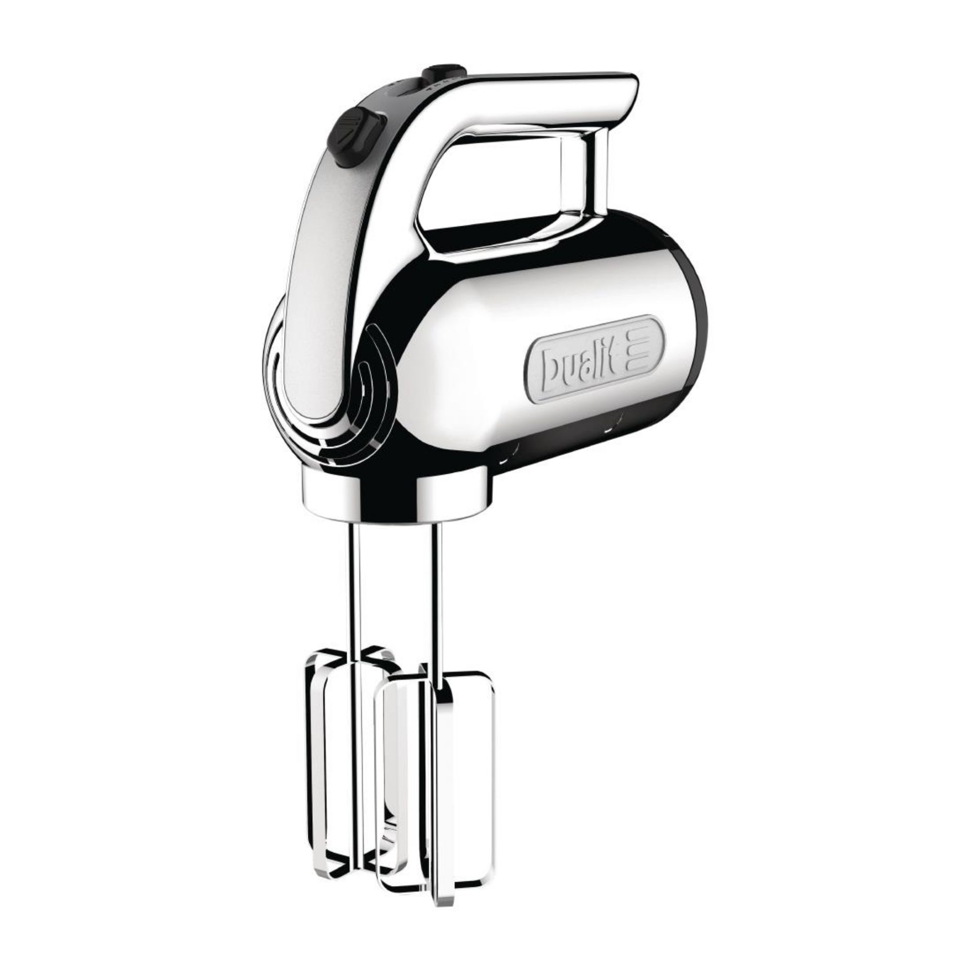 This high-quality and attractive hand mixer from Dualit can be operated at different speeds and comes supplied with a wide variety of attachments. As a result, this mixer is suitable for any number of cooking and baking tasks. It features a retractable cord, allowing it to be tidied away easily after use, and has a powerful 400W motor, which is ideal for making any number of dishes. Ideal for home use - no commercial warranty.
