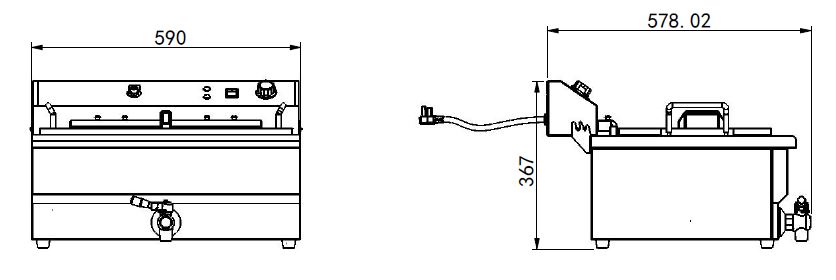 Perfect for professional kitchens and events, our fryer is ideal for frying specialties like doughnuts, deep-fried dough balls, or fish with ease. This large fryer combines ease of use with powerful performance, allowing you to effortlessly prepare large quantities of crispy chips, snacks and more. Made of high-quality stainless steel, ensuring stability and an easy-to-clean surface. The dimensions are 590x570x370 mm (LxWxH) - capacity 25 litres - consumption 6 kW - power 400V - temp +50/+300ºC - weight 14.8 kg.