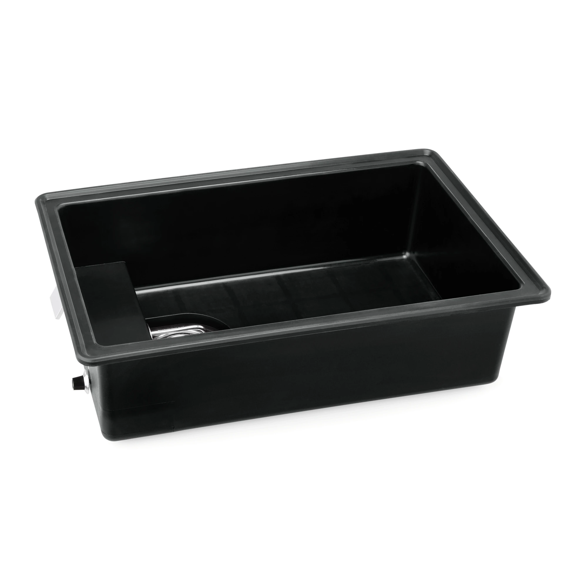 The product features a control thermostat designed for GN pans with dimensions of 1/1 - 100 mm or for accommodating two GN pans of size 1/2.