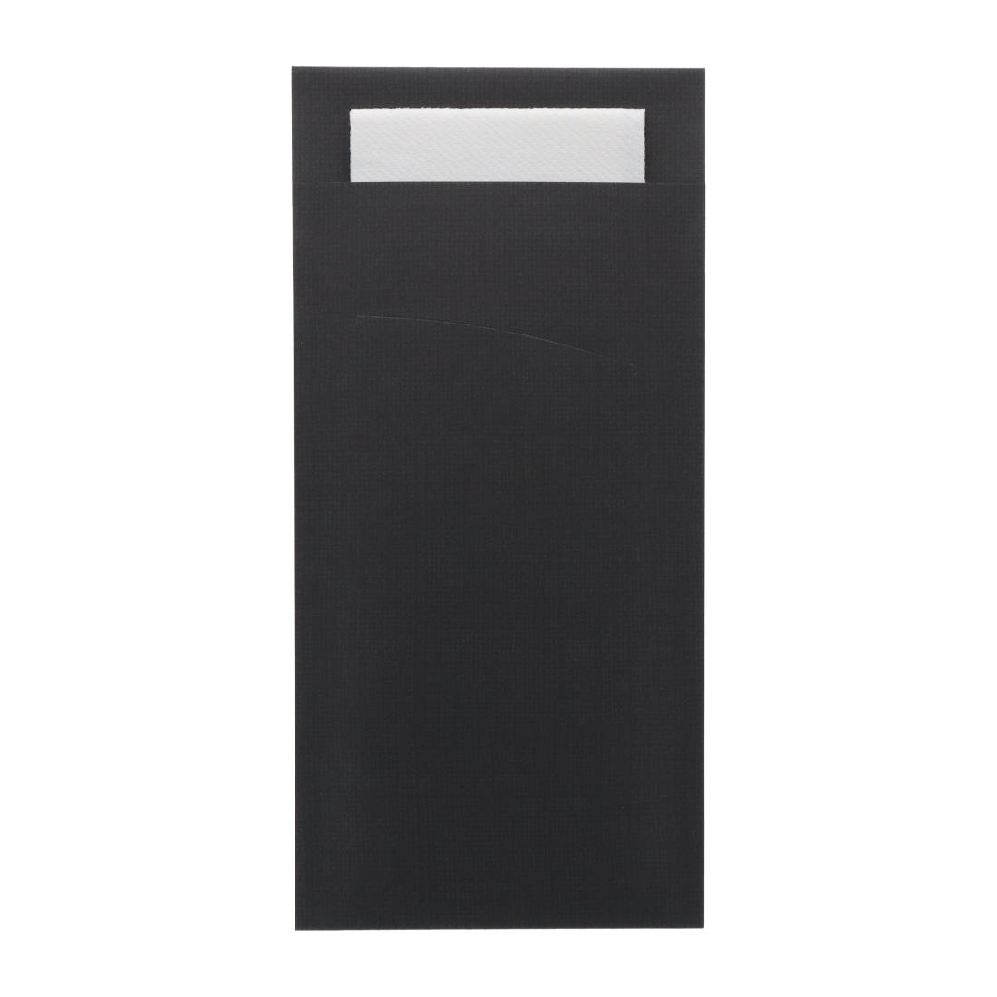 Europochette Extra Size Black Cutlery Pouch with White Airlaid Napkin (200 pack) - HX980