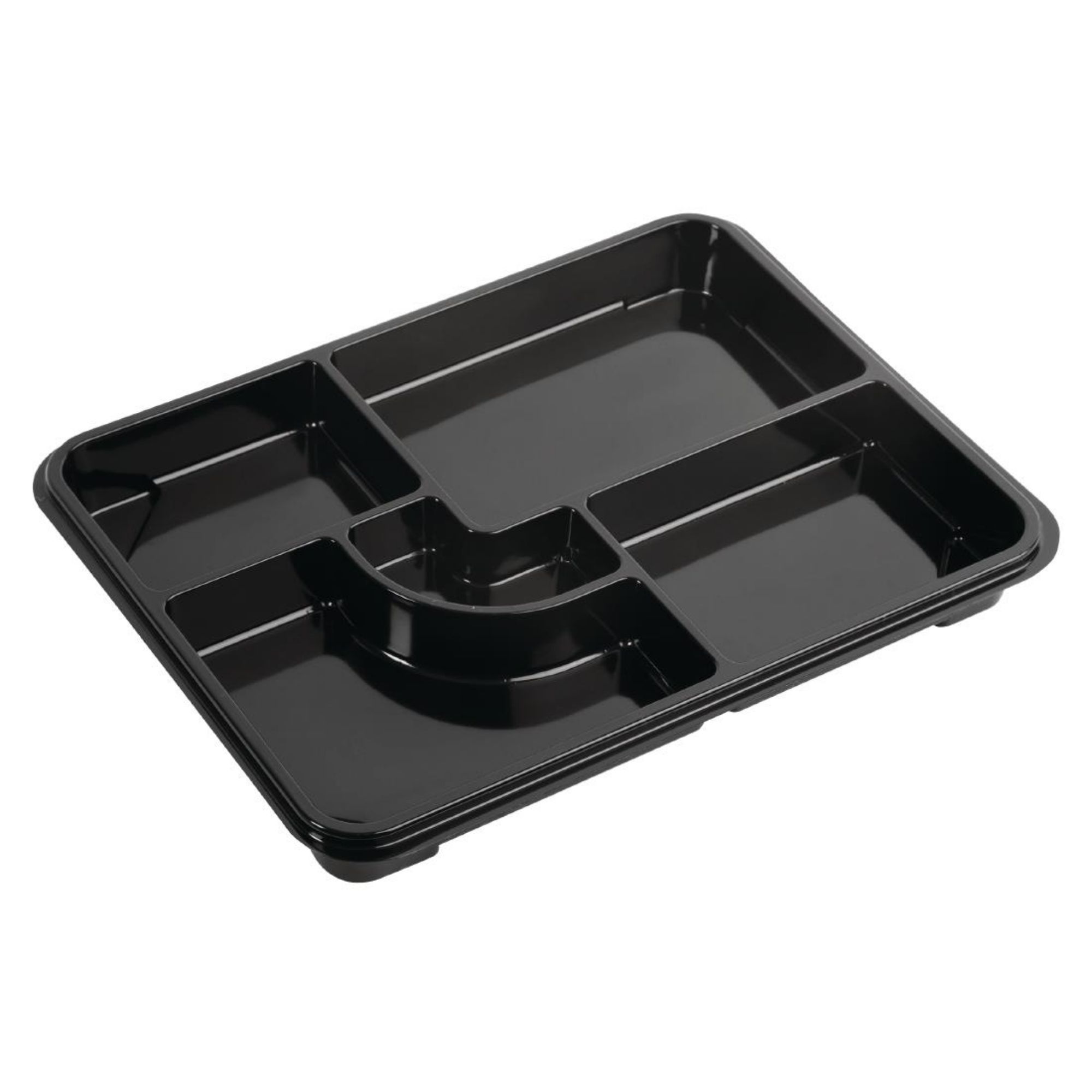 A pack of 100 bento boxes made from recycled plastic. These boxes are fully recyclable after use and are perfect for serving sushi.