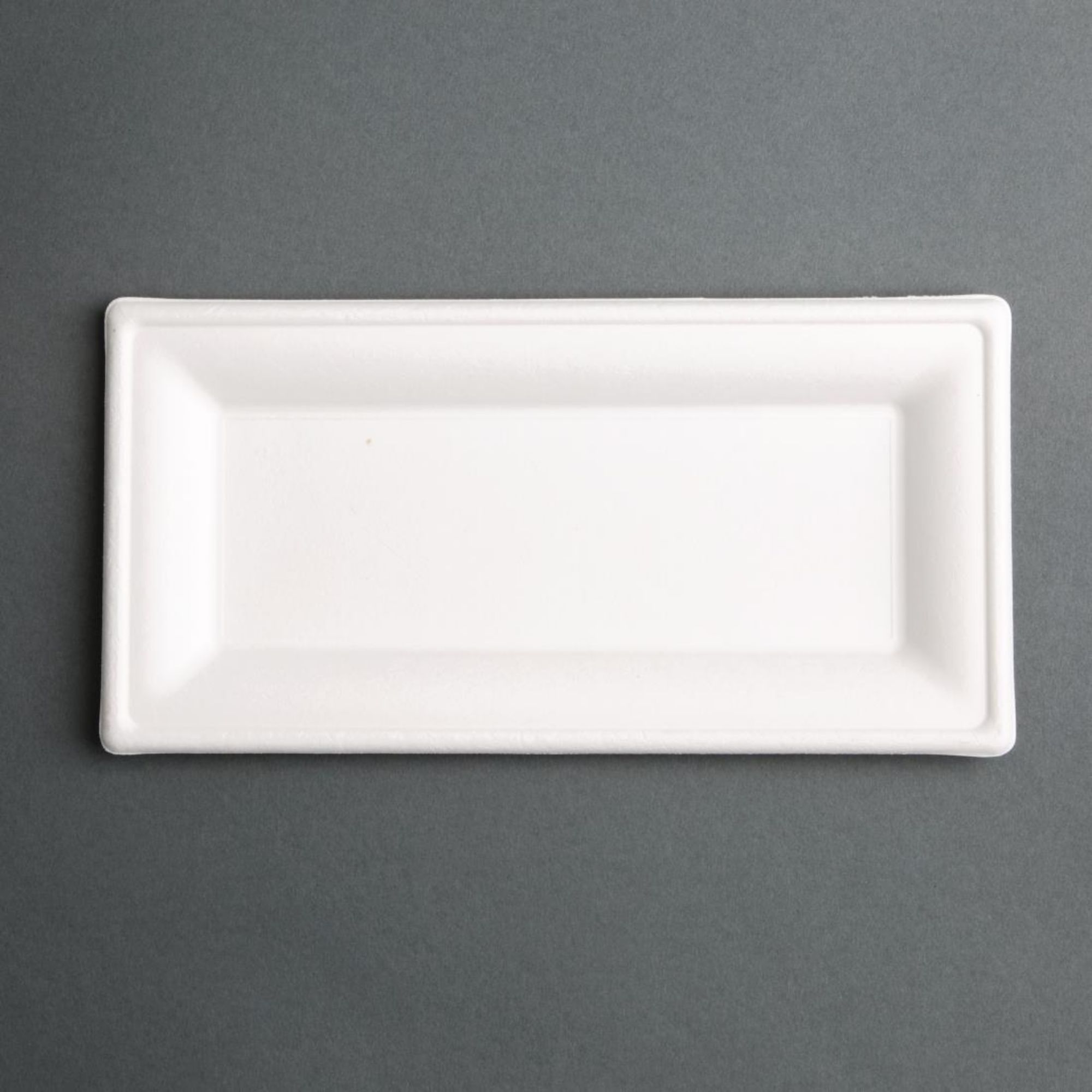 Boost your green credentials by serving food with these 258(W) x 130(D)mm Fiesta Green compostable bagasse rectangular plates. Made completely from recycled, waste sugarcane, the plates are kinder to the Earth than polystyrene alternatives and are commercially compostable within 12 weeks after use. Switching to these plates will therefore help you to reduce your environmental impact and divert waste away from landfill sites.