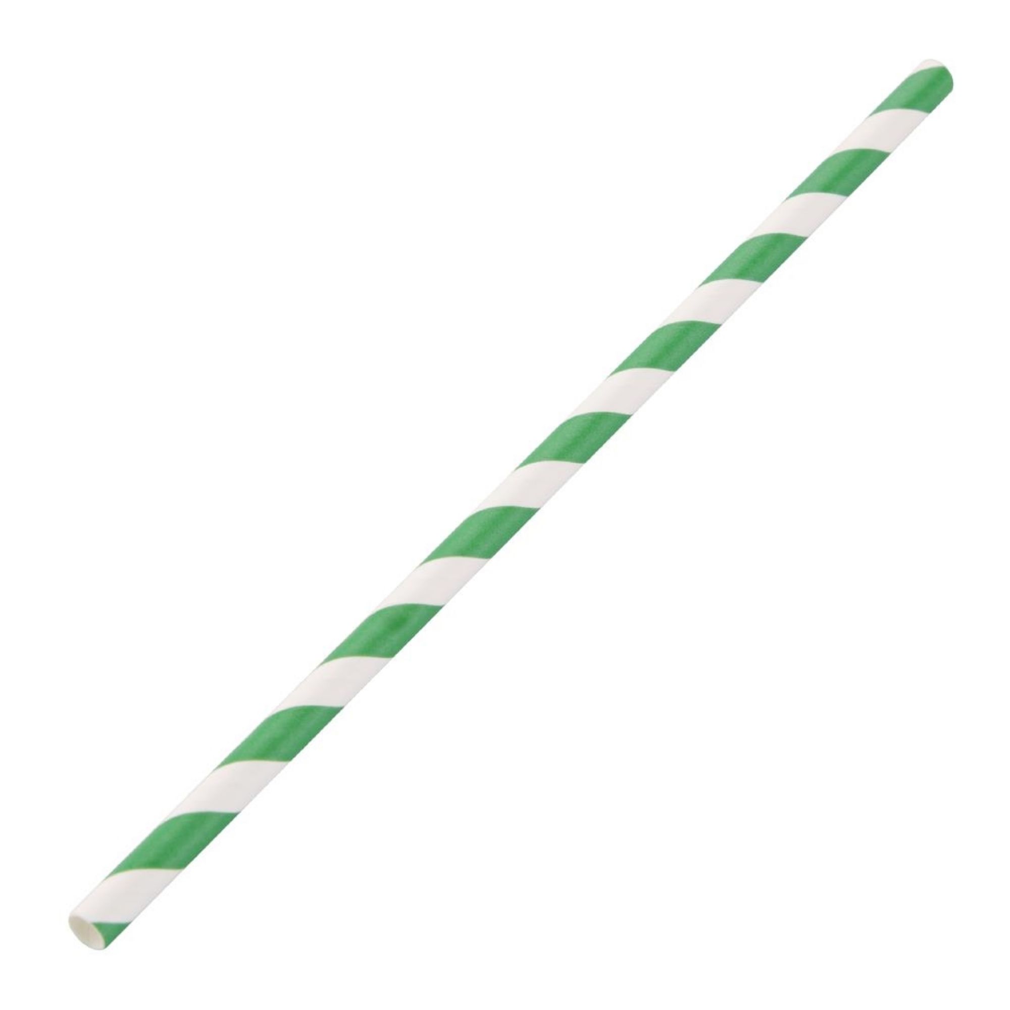 The premium 3-ply paper design makes these drinking straws strong and resistant to softening for longer, ensuring it's easy for your customers to sip and enjoy their cold drinks. The green-striped design also gives these straws a stylish look, adding delightful color to the presentation of your fruit juices, smoothies, and soft drinks.