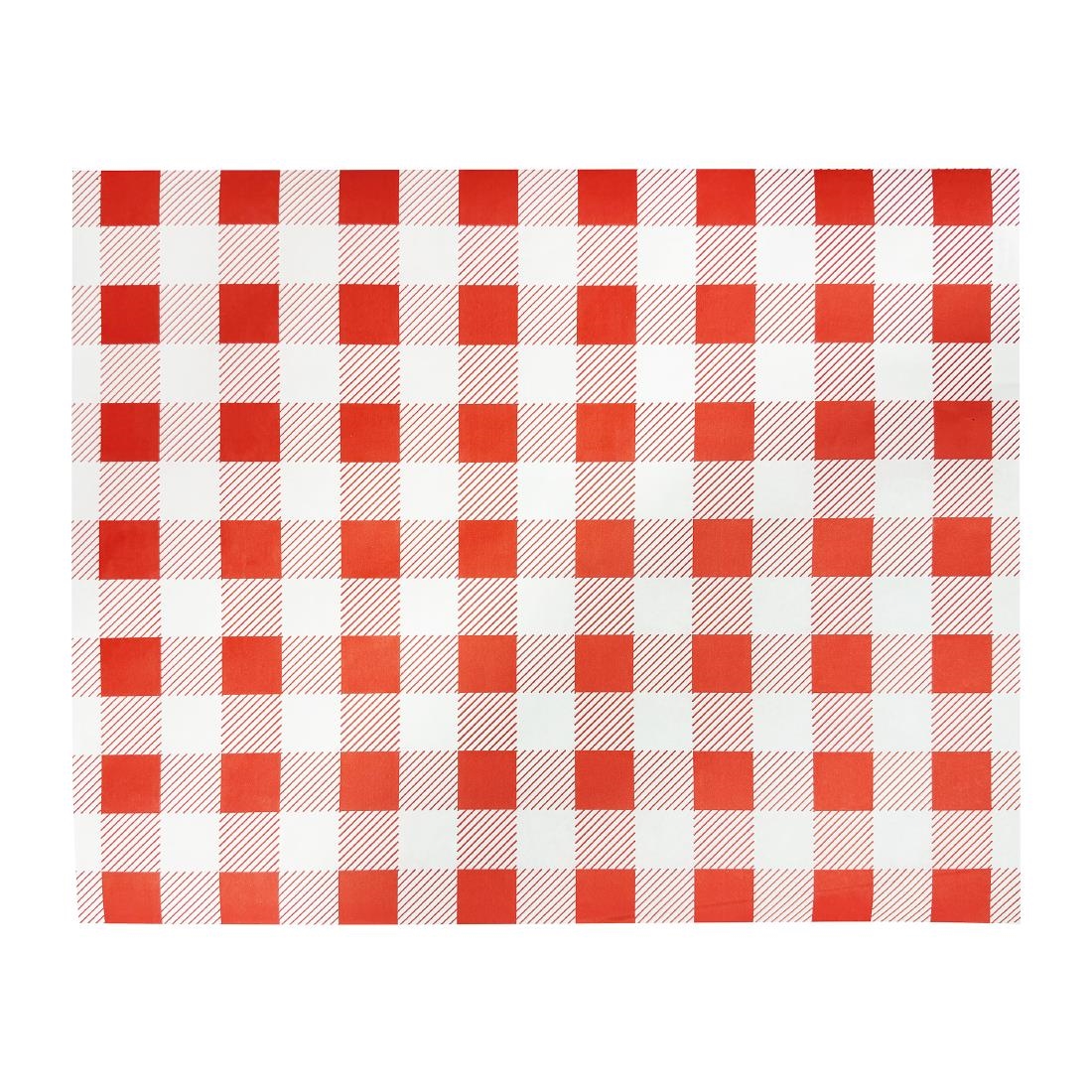 Give your food presentation that extra bit of flare. These Fiesta Compostable red gingham greaseproof paper sheets add a classic look to your burgers, chips and other fried food. Their grease-resistant material prevents messy oil from soaking through, keeping your customers' hands and serving platters clean.