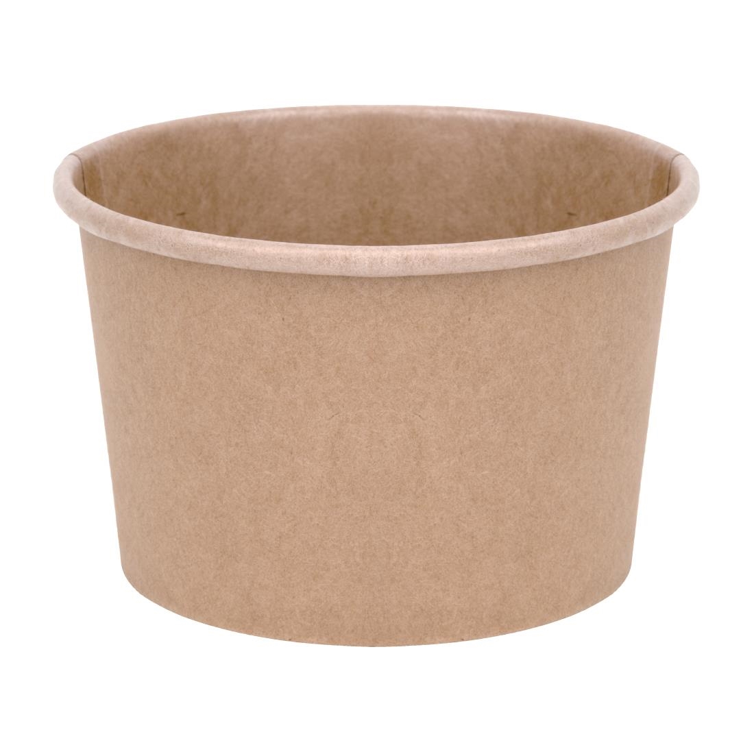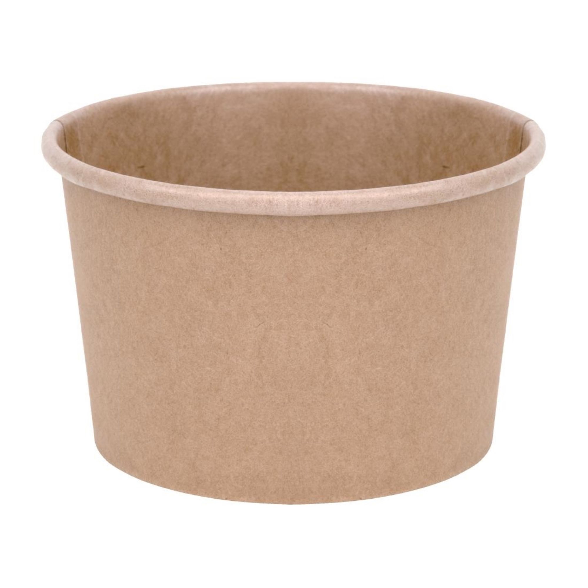 Streamline food service with these 98mm diameter, 8oz Fiesta Compostable soup containers. Made from paperboard and featuring a plant-based lining, these soup containers can be commercially composted after use, helping you and your customers divert packaging away from landfill. The kraft color gives the pots a rustic look that enhances the appearance of your warming soups, broths, and stews. Rolled edges provide extra strength, ensuring a tight lid fit to prevent any spills or leaks.