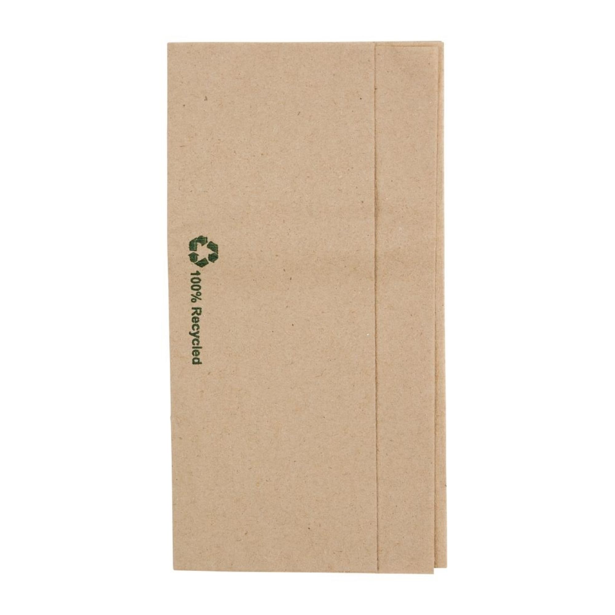 Take steps towards sustainability with this pack of 6000 Fiesta Kraft napkins. These napkins are designed for use with any quick service, such as food vans, stalls, or takeaway cafes. They are constructed with a 1-ply design that allows guests to quickly mop up spills with minimal effort. The pre-folded design means that the napkins can be used straight out of the packet, saving you time on lengthy preparation tasks.