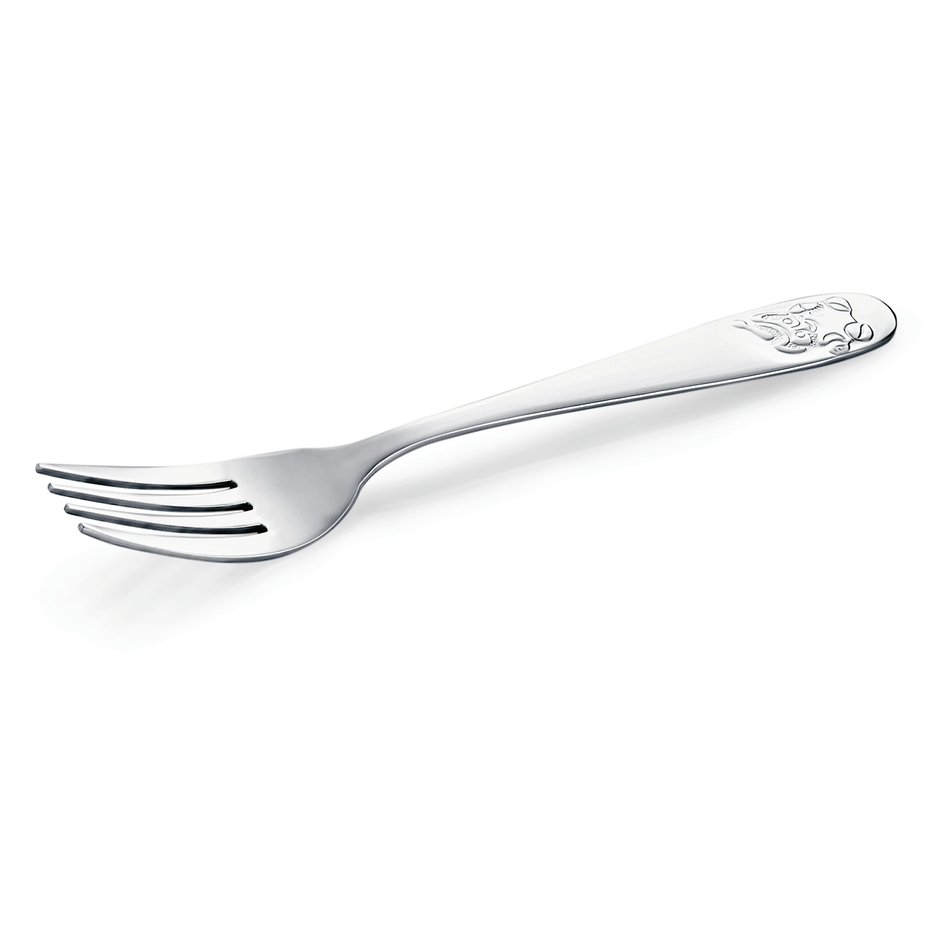 Children's fork with a bear motif and children's cutlery knife made of chrome steel.