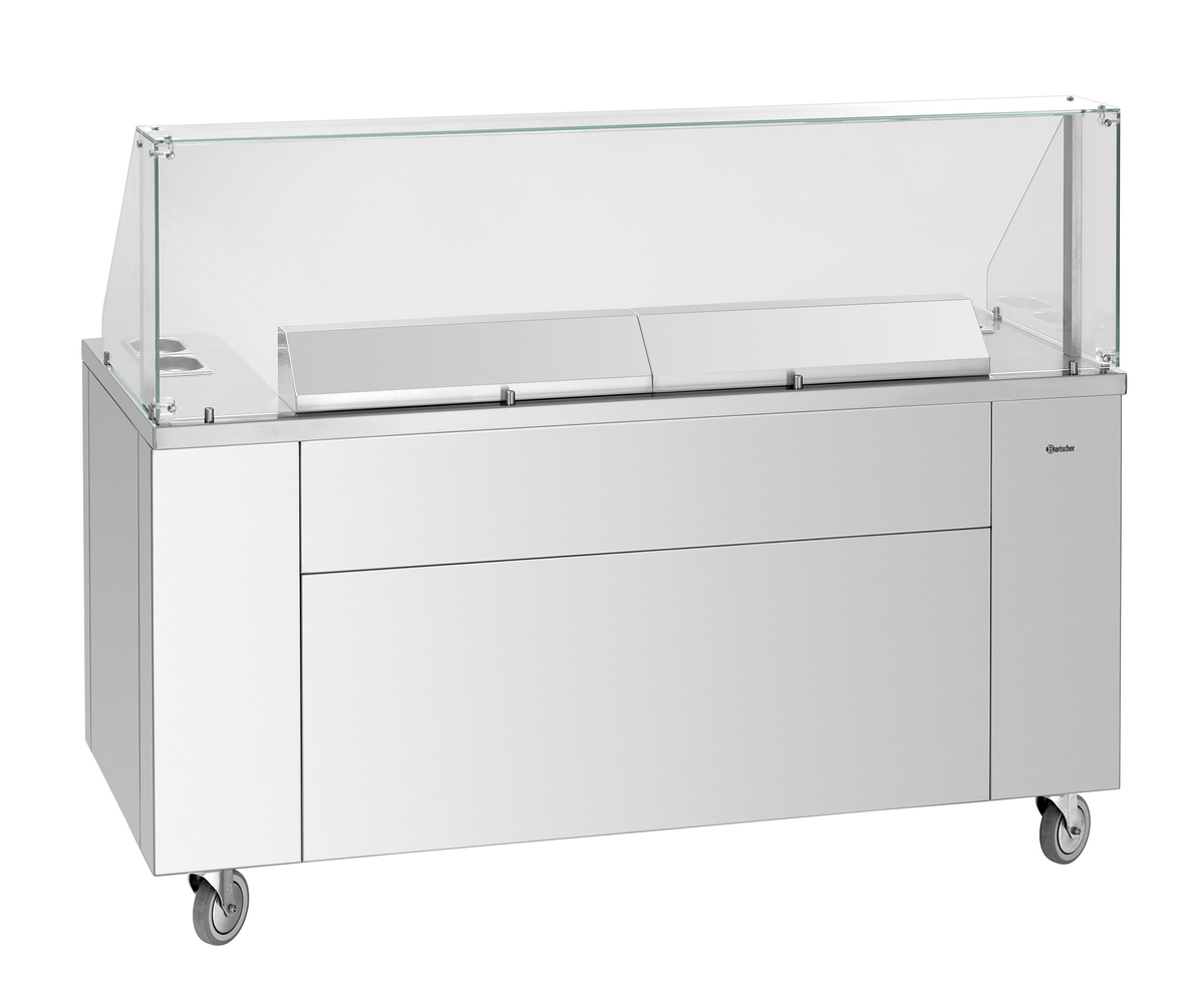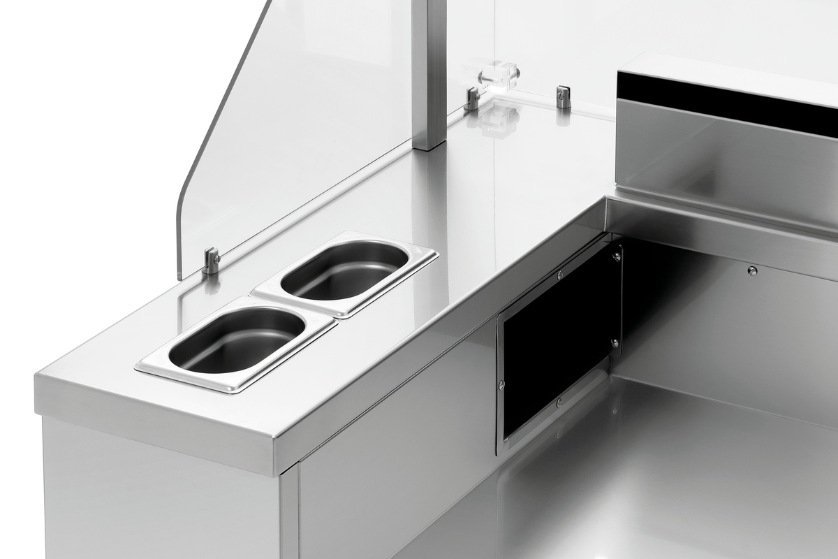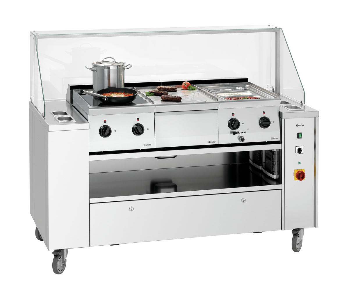 Simply perfect—a mobile solution for front cooking, catering, and events. This unit can be flexibly equipped with the ideal table-top appliances and accessories for truly versatile use. The appliances can be easily exchanged as needed to meet changing requirements.