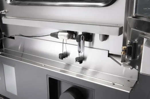 The Giorik KORE - KM061W Compact Electric Combi Oven is equipped with user-friendly programmable touchscreen controls, providing ease of operation. It features an inbuilt wash system for convenient maintenance and an automatic reversing fan with three speeds to ensure optimal cooking results. The oven also includes a multi-level cooking program and a core cooking option with Delta T, offering versatility and precision in cooking.