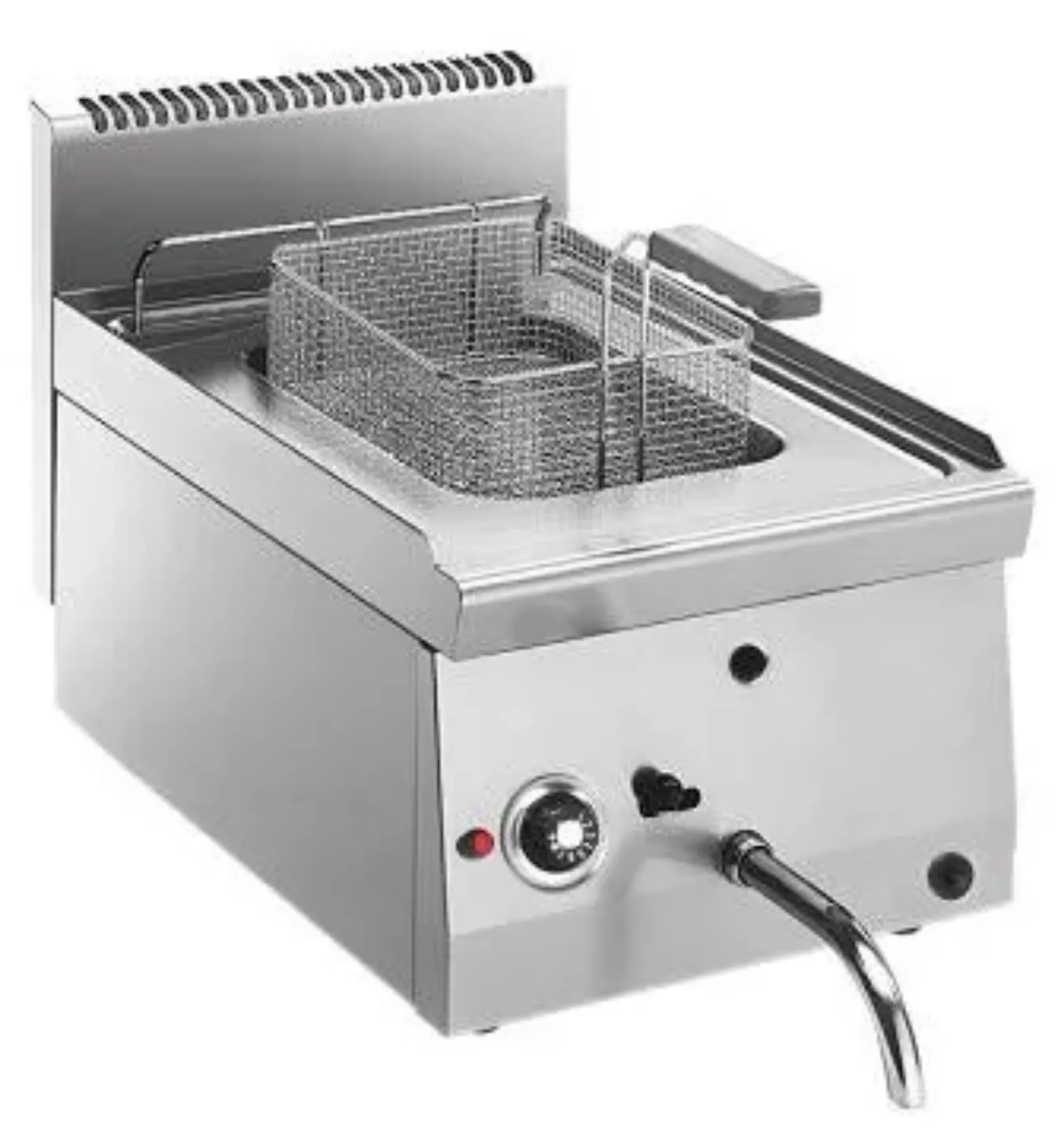 The Giorik Snack 60 LFG4710 is an 8-liter slimline single gas tank fryer designed for efficient and effective frying. This fryer is ideal for commercial kitchens that require a compact yet powerful frying solution. Its slimline design allows it to fit seamlessly into tight spaces without compromising on performance. The fryer features a robust construction, ensuring durability and longevity even in high-demand environments. With its user-friendly controls, operators can easily adjust the temperature to achieve the perfect fry every time. The Giorik Snack 60 LFG4710 is a reliable choice for those looking to enhance their kitchen's frying capabilities.