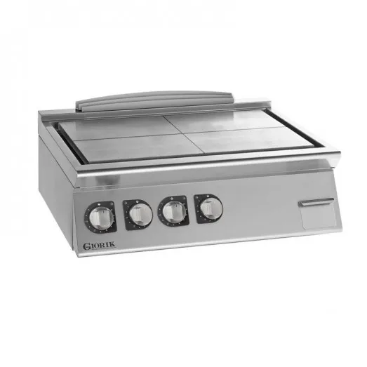 The Giorik TE740T electric solid top is designed with a thick solid top, allowing pans to be easily moved around the cooking surface. It is fitted with four heating zones, all independently controlled.