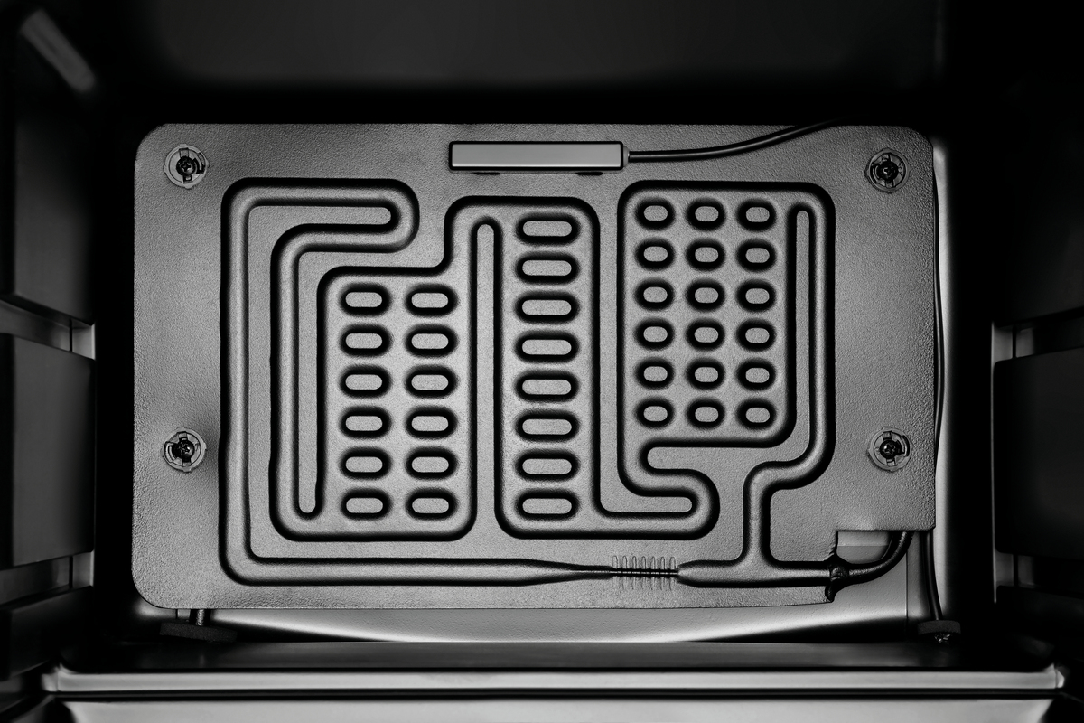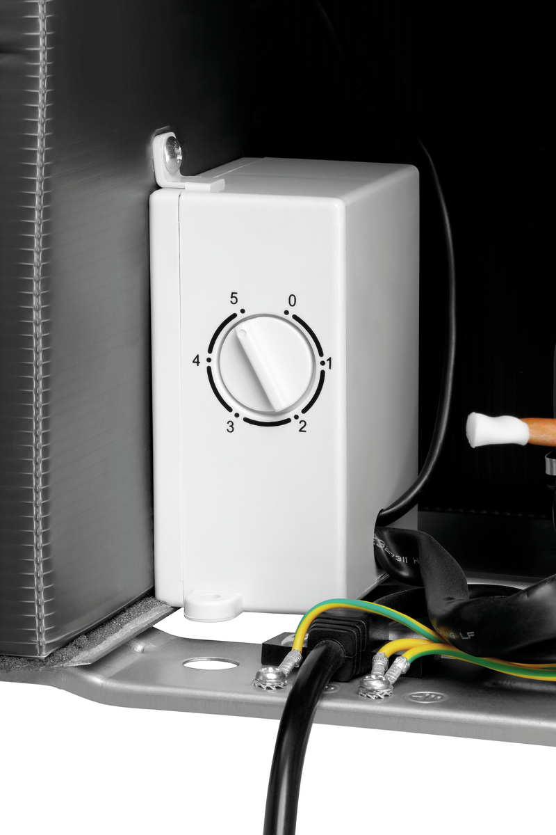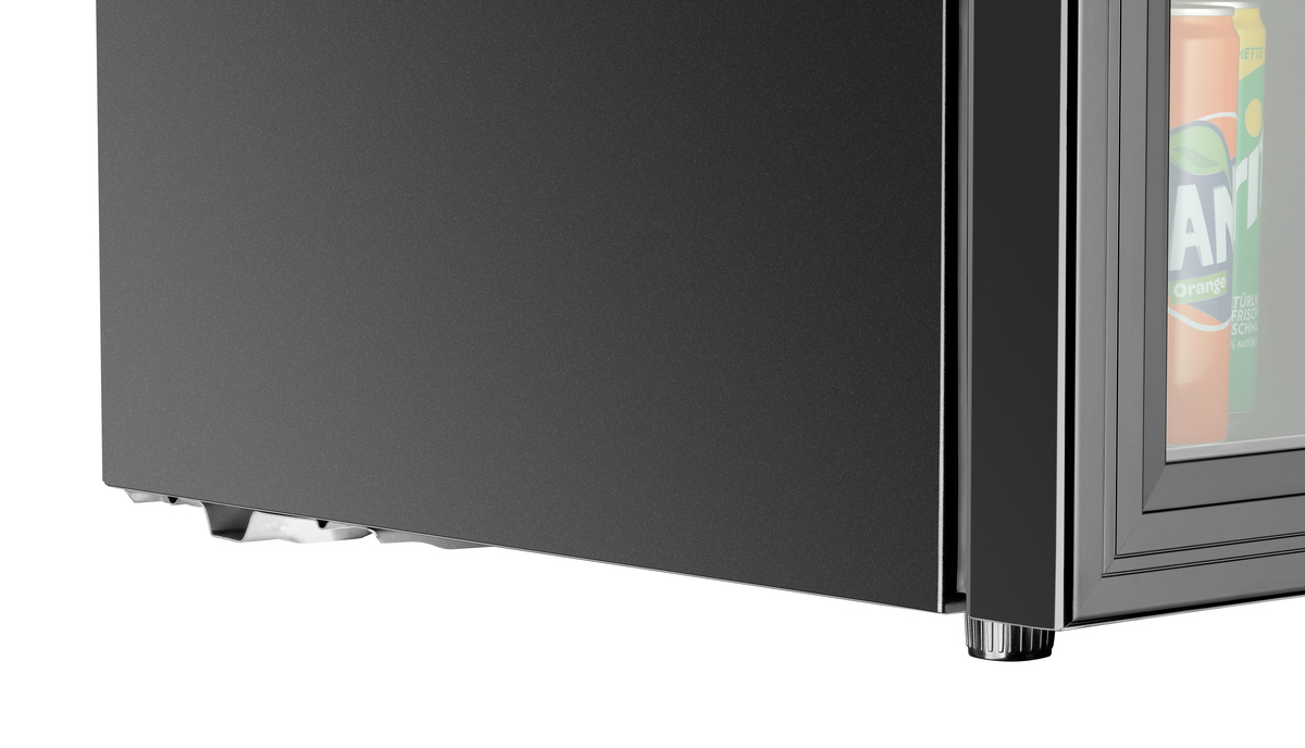 This compact refrigerator, featuring a glass door and modern design, can be customized with height-adjustable intermediate shelves. It provides a space-saving solution for refrigerated take-away items in the self-service areas of kiosks, snack bars, and petrol stations.