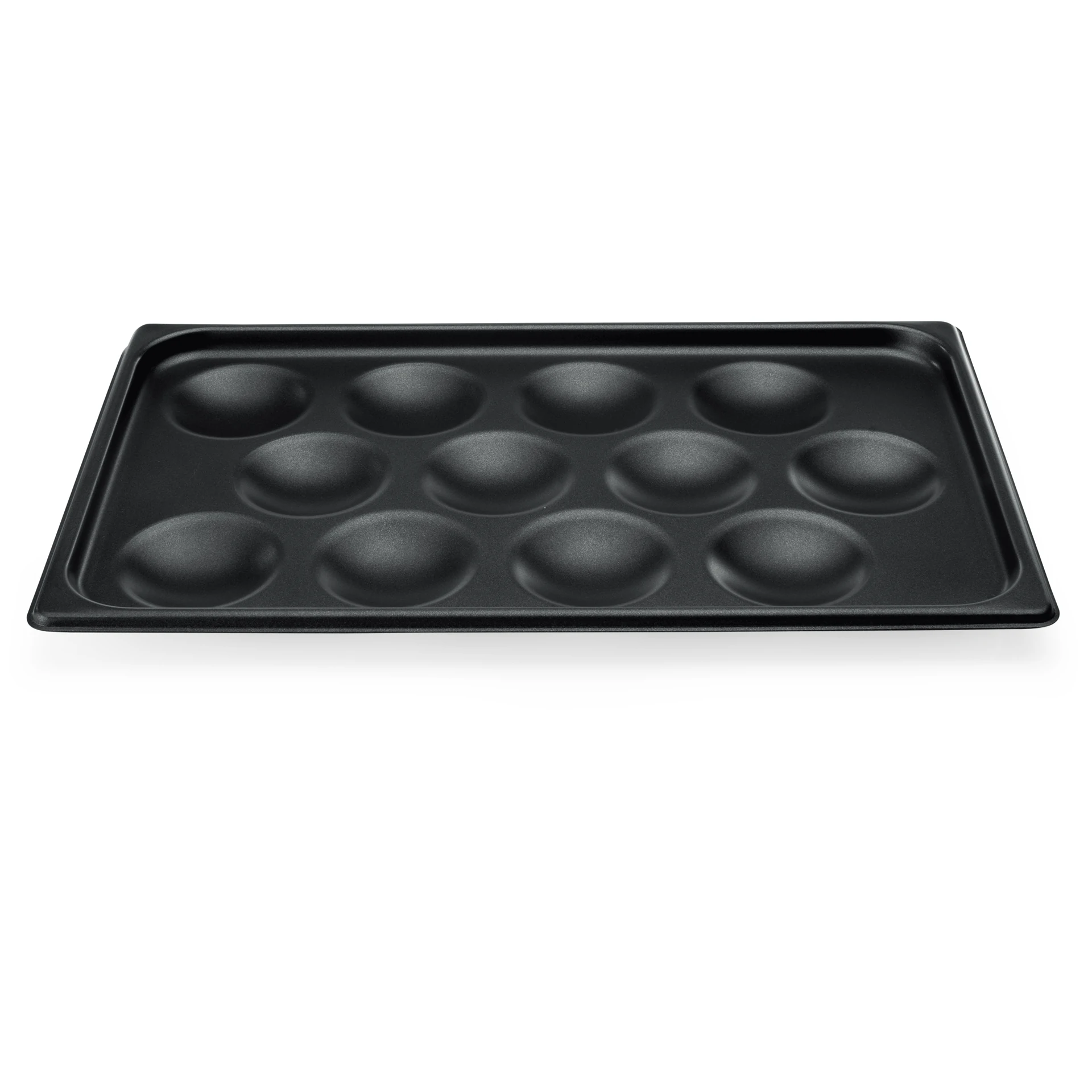 This muffin pan features a PTFE non-stick coating, designed to accommodate 12 muffins.
