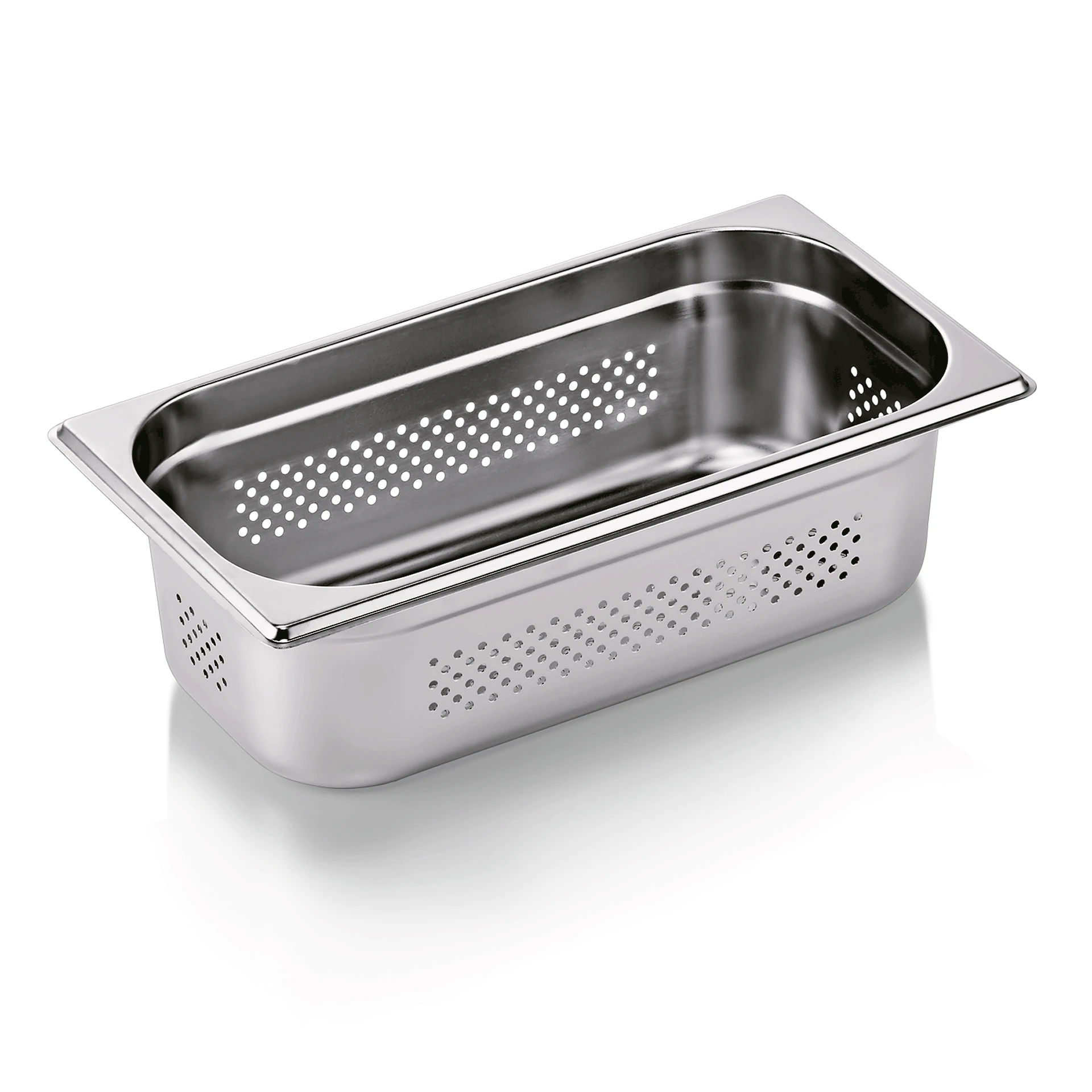 The product features a perforated base and sides, providing enhanced ventilation and drainage. It is constructed with a material thickness of 0.6 mm, ensuring durability and stability.