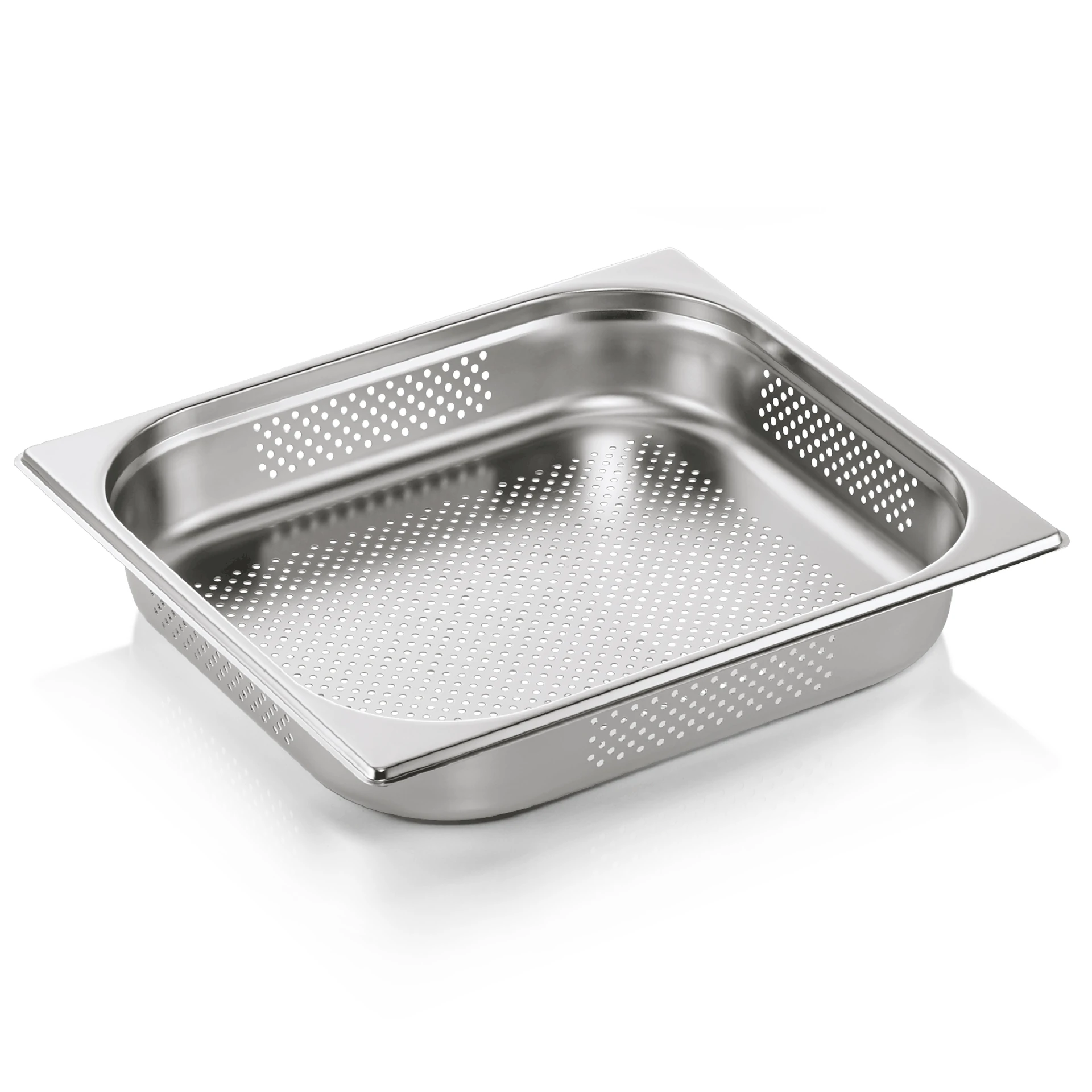 The product features a perforated base and sides, allowing for efficient airflow and drainage. It is constructed with a material thickness of 0.6 mm, ensuring durability and stability.