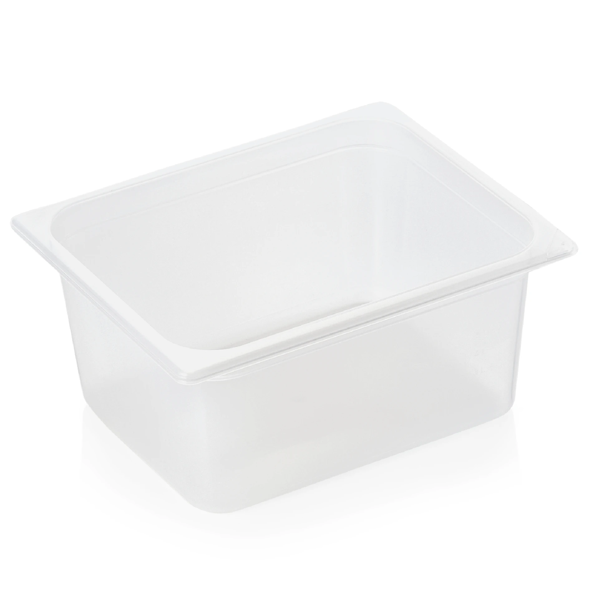 The product features a BPA-free, tightly closing lid, ensuring safety and freshness. Both the container and lid can be color-coded using HACCP clips, which is ideal for maintaining hygiene standards. Additionally, the product includes scaling for precise measurements.