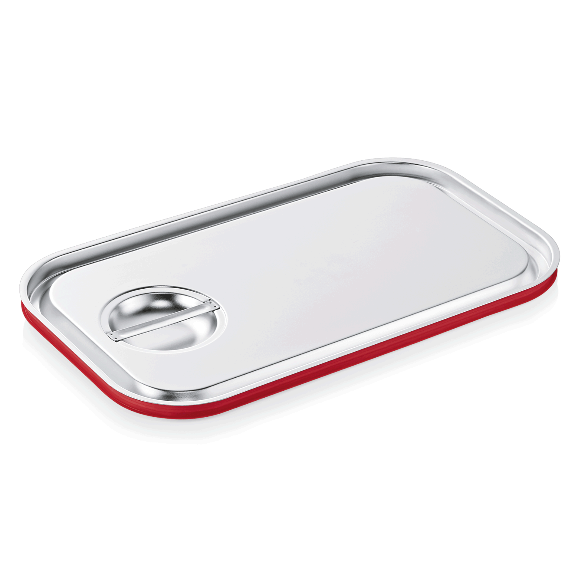 The silicone seal around the underside and hole is designed to prevent vacuum pressure, making it suitable for GN pans with depths of 100 mm and up.