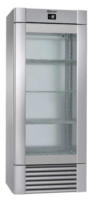The Gram ECO MIDI FG 82 CCG 4S K Stainless Steel Display Freezer combines stylish design with high functionality. It is equipped with internal LED lighting, which can be switched on and off via a control panel, illuminating stored content through the glass door. This freezer is popular across the hospitality and food service industries due to its ability to maintain energy efficiency and low running costs.