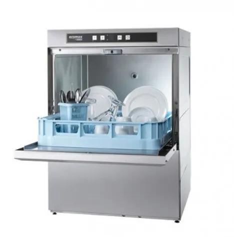 The Hobart Ecomax F504W-20B dishwasher, formerly known as the F504W, features the largest 500mm rack and has the capacity to wash up to 60 racks per hour, resulting in over 1000 plates per hour (18 plates per rack). With wash cycles ranging from 60 to 180 seconds and low water usage at only 2.3 liters per rack, the F504W-20B is economical and helps reduce energy consumption. It includes integral detergent and rinse aid dosing as standard. This high-quality, German-built, front-loading undercounter dishwasher is from a trusted name in the industry. The Hobart F504W-20B is also available with a water softener, known as the F504SW-20B.