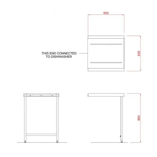 The Hobart SC650 Outlet Single Rack Table features welded, high-grade stainless steel tabling.