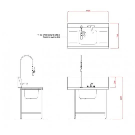 The Hobart SD1150R/L Inlet Double Rack Table & Sink features welded, high-grade stainless steel tabling and a square tubular leg frame.