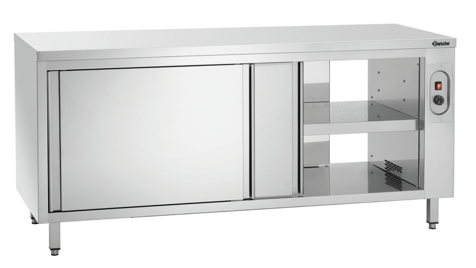 The heated cabinet, with a width of 1.8 meters, offers infinitely variable, heated storage with double-sided operation. Simultaneously, the robust stainless steel surface integrates a solid work element into the kitchen.