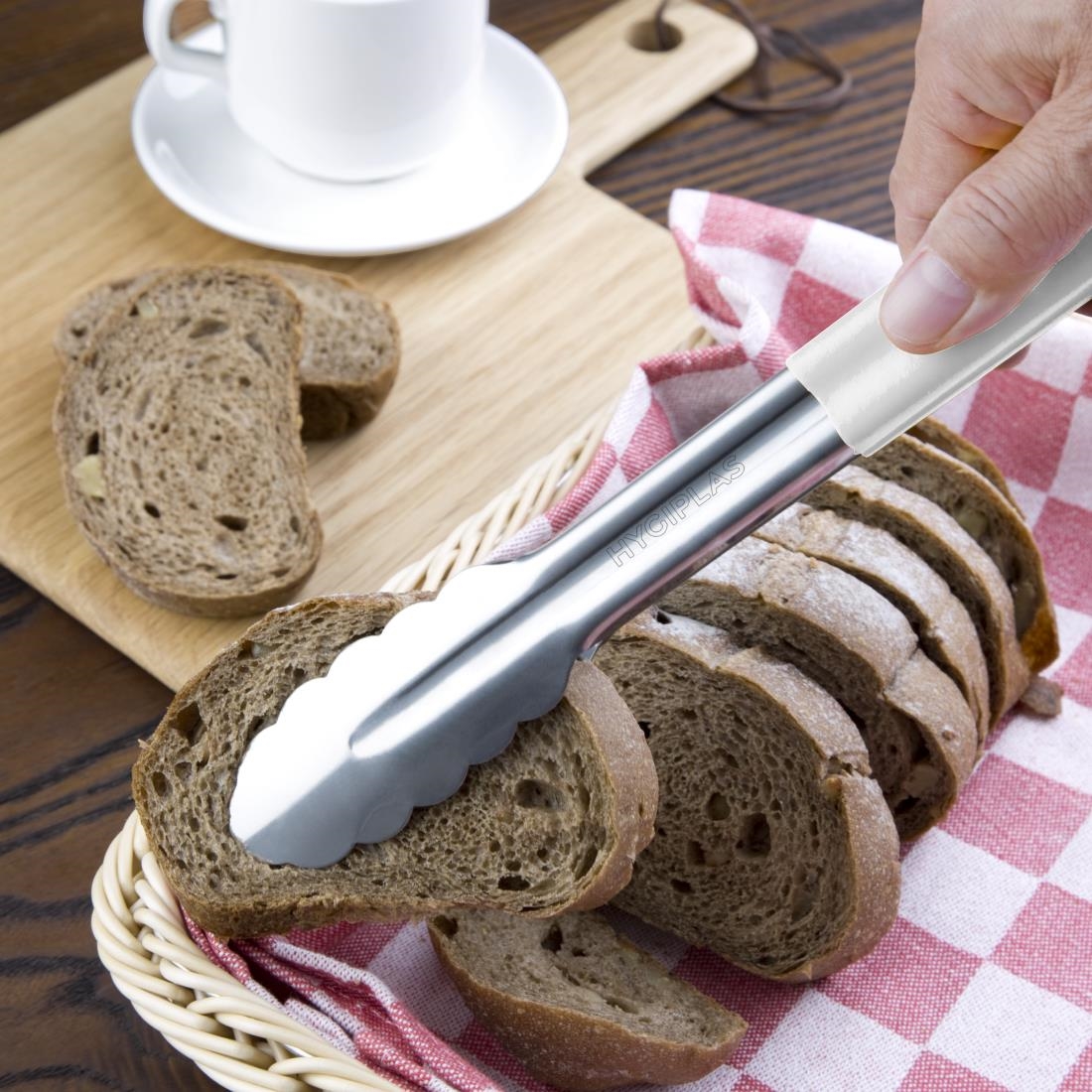 In the hand, these tongs save valuable time. The vinyl-coated handles are comfortable to hold even when gripped firmly, allowing you to turn, plate, or serve for longer periods without aches or pains. The sleek, smooth shape is also free of any recesses or folds where food debris may build up, making the tongs incredibly easy to clean and keep hygienic. Made from premium stainless steel for exceptional strength and durability, they're guaranteed to deliver time and time again.