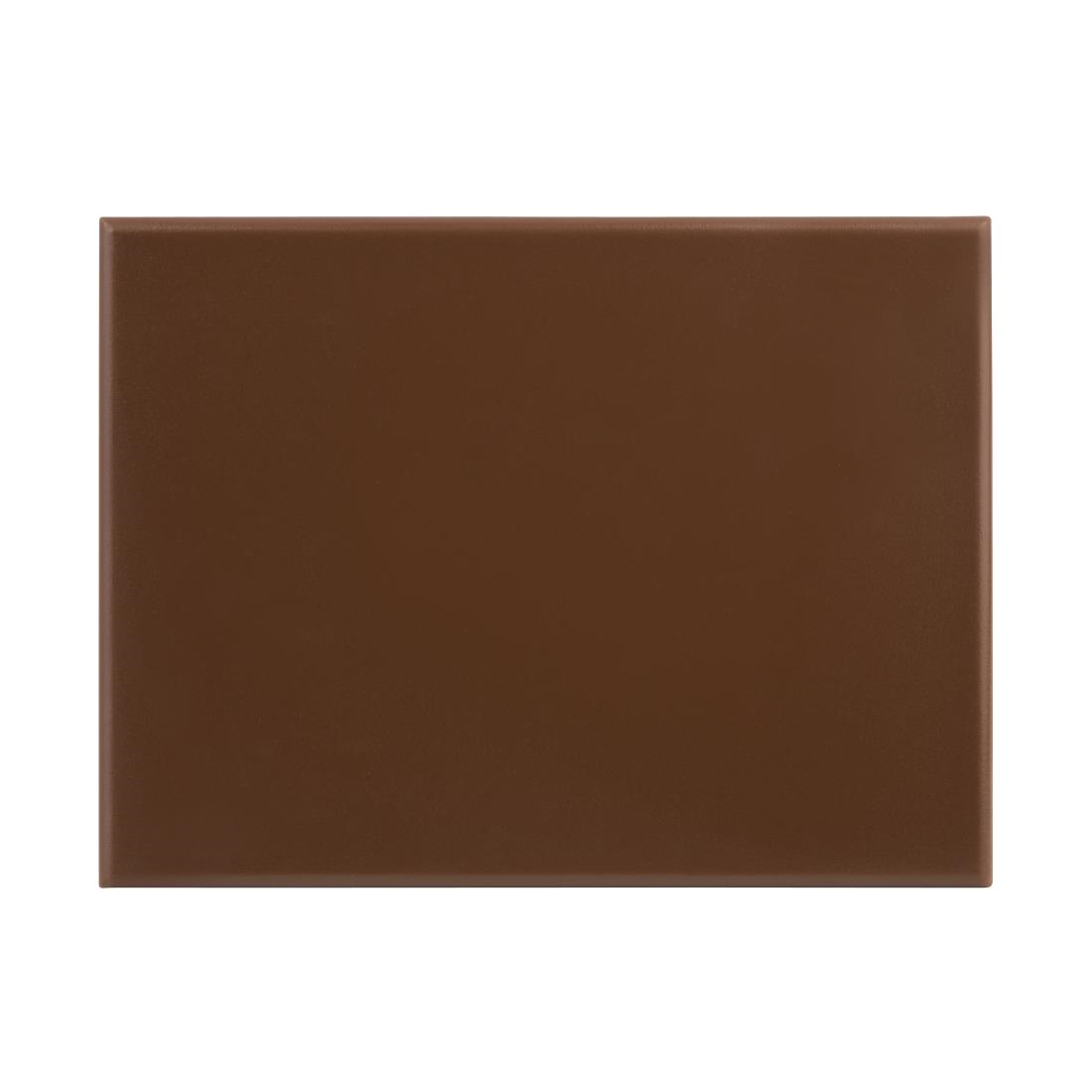 Prevent dangerous bacteria from spreading during preparation with the Hygiplas brown high-density chopping board. With a width of 305mm, this chopping board provides ample space for everyday food preparation while being flexible enough for use in compact spaces. Made from high-density polyethylene for incredible durability, it is specifically designed to withstand the demands of a fast-paced commercial kitchen. The non-absorbent surface is also very easy to clean, helping ensure that you always prepare food in sanitary conditions.