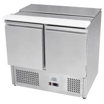 The Ice-A-Cool ICE3800GR 2 Door Refrigerated Saladette Prep Counter is a compact and tidy preparation counter that fits perfectly into any business looking to store refrigerated goods. It offers a usable working area of 900mm x 135mm, making it an ideal solution for efficient food preparation and storage.