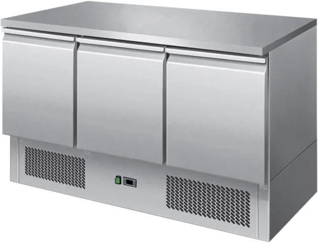 The Ice-A-Cool ICE3851GR 3 Door Undercounter Refrigerator is a compact and tidy refrigerated counter that can fit perfectly into any business looking to store refrigerated goods.