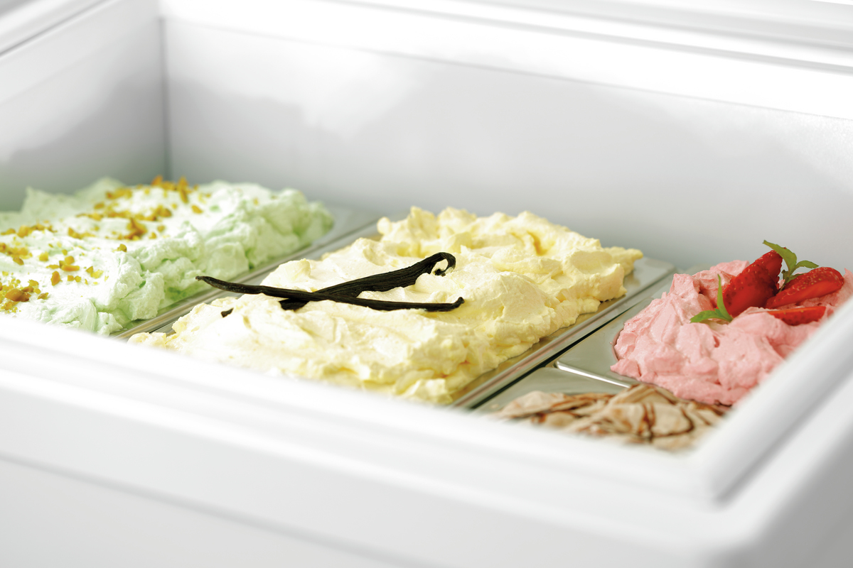 The 3x5L-F ice cabinet is an ideal solution for storing homemade ice cream. It effectively keeps desserts cool and attractively displayed after production. The design features low-lying containers that minimize the formation of ice on the surfaces, ensuring your ice cream remains in optimal condition.
