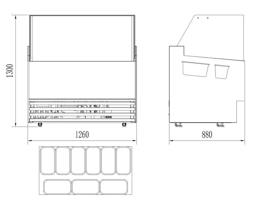 This ice cream display is the perfect solution for showcasing and storing scoop ice cream, ideal for ice cream parlors, hospitality venues, or events. Thanks to ventilated cooling, the temperature is evenly distributed, while automatic defrosting makes maintenance easy. The LED lighting ensures an attractive presentation of the ice cream, enticing customers to make a flavorful choice. With enough space for 9 containers of 5 liters, this display freezer offers optimal storage capacity. Dimensions: 1260x880x1300 mm (WxDxH) - Capacity: 285 liters - Temperature: -16/-18ºC - Energy consumption: 1,05 kW - Weight: 195 kg.