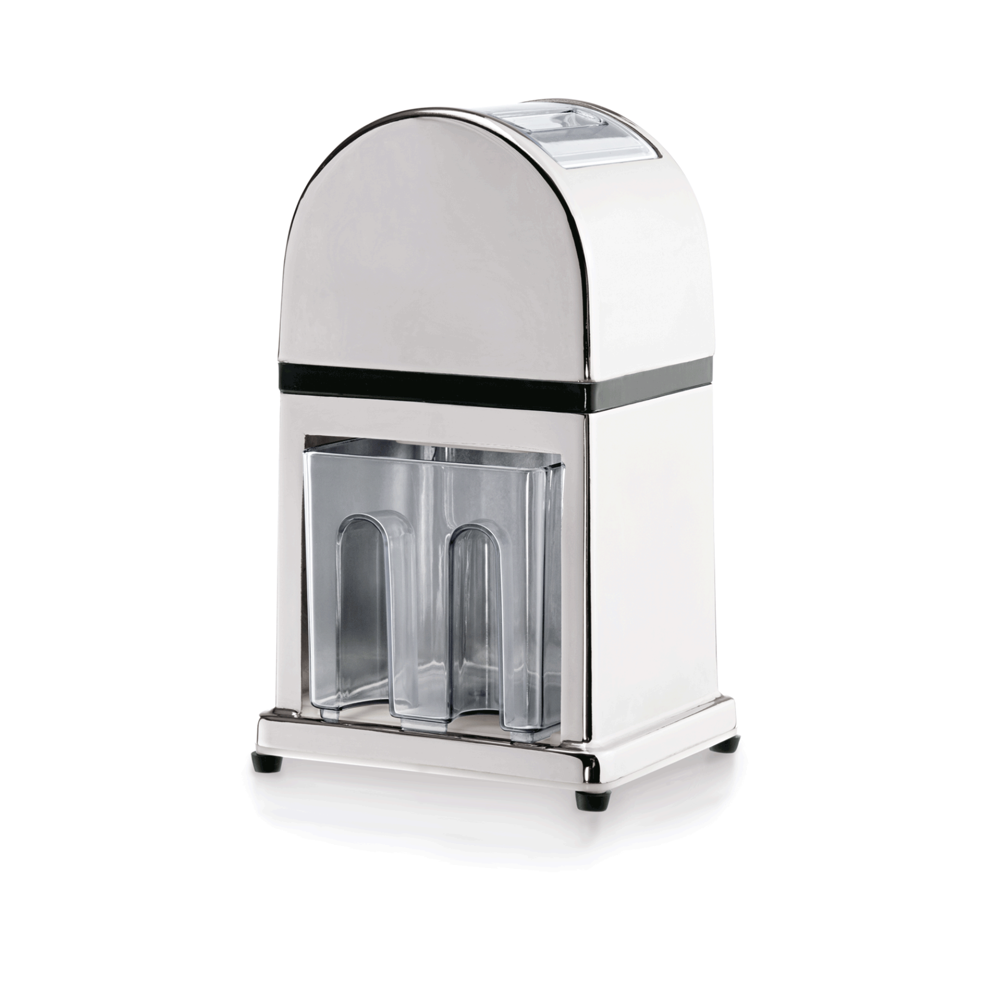 The product is made from cast zinc and features a chrome-plated finish. It includes a convenient crank handle for ease of use.