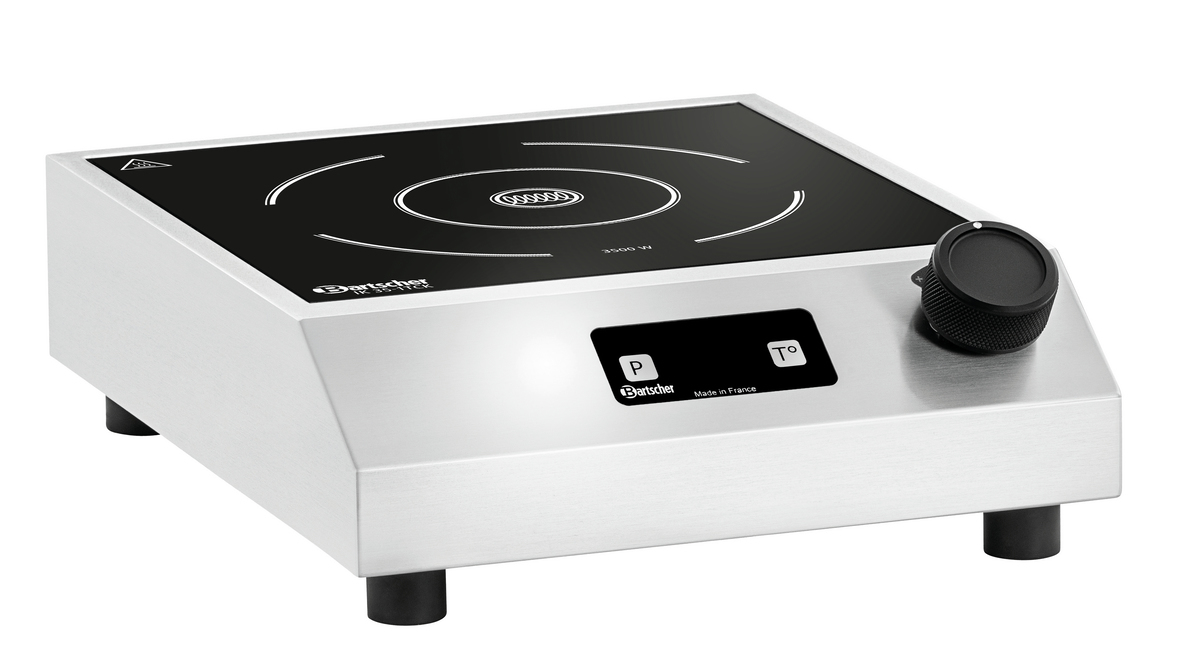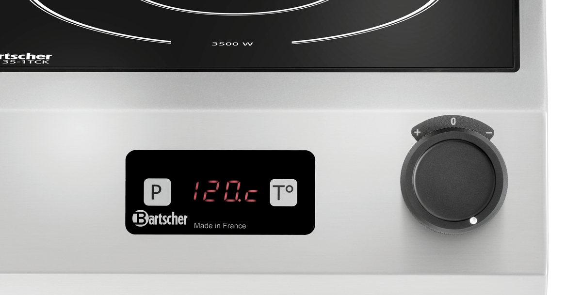 This one-hob induction cooker is flexible and powerful. The power and temperature can be regulated easily using the combined touch and knob display.