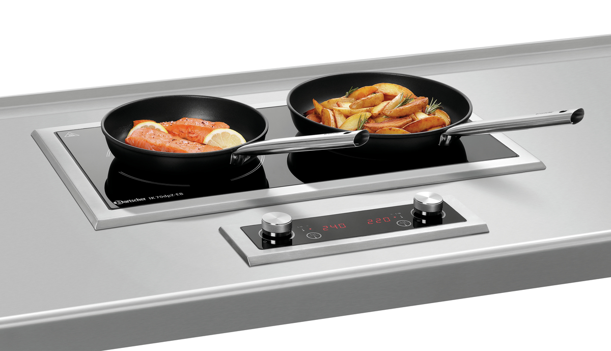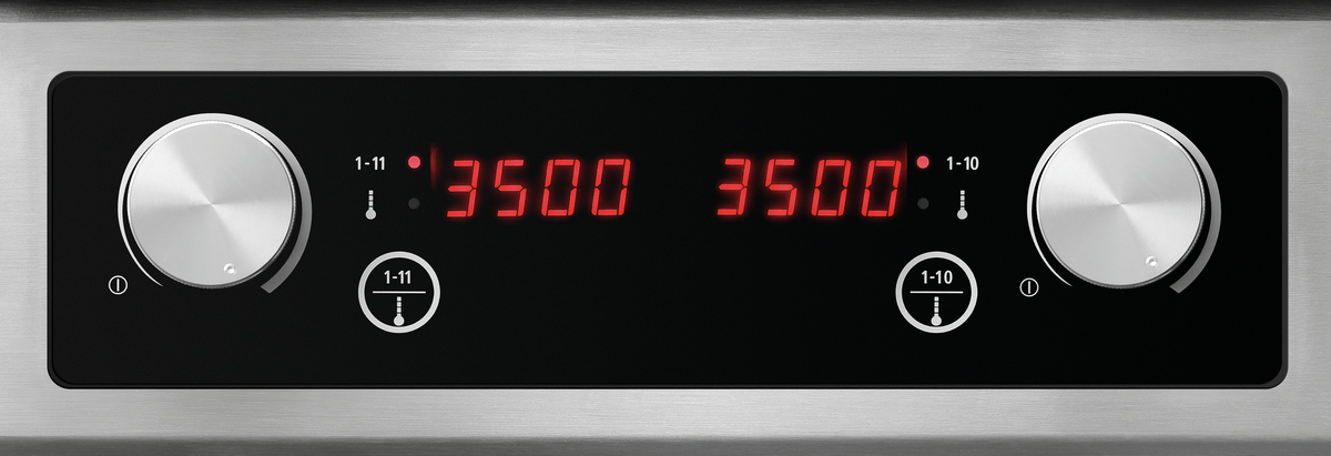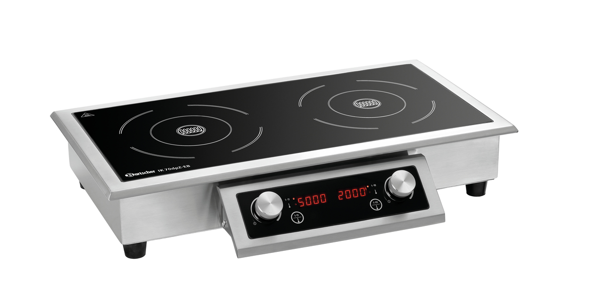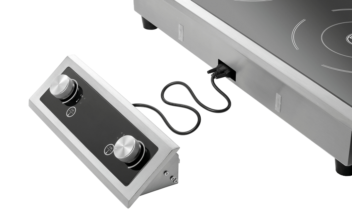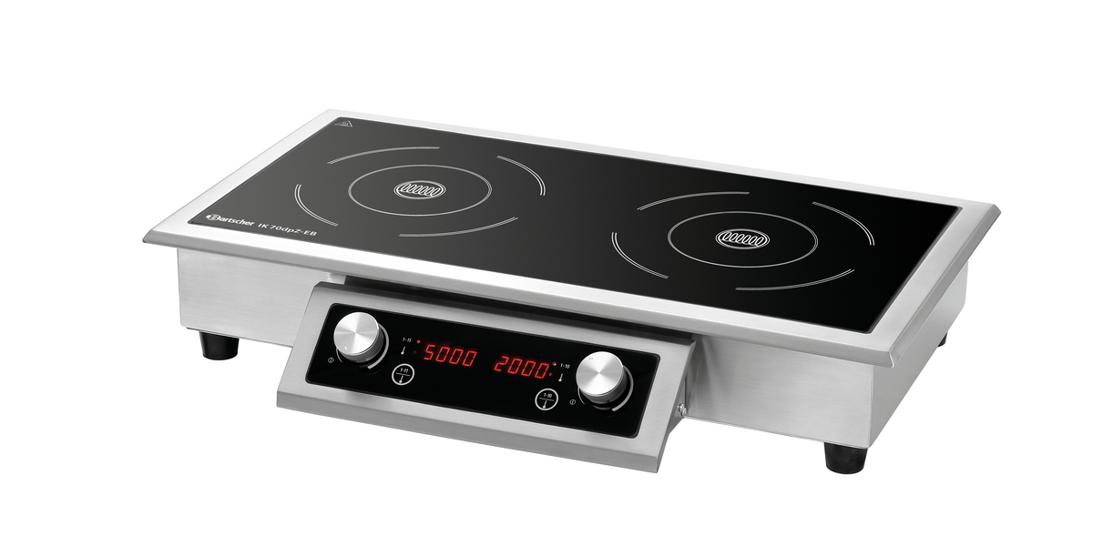You can't get more flexible than this. This induction cooker, with its removable control panel, is suitable for use as a tabletop appliance or for being built into a buffet counter. Its 7000 W of power can be distributed over the two hobs as required. The left-hand hob, with up to 5000 W, is ideal for fast poaching and hot roasting.