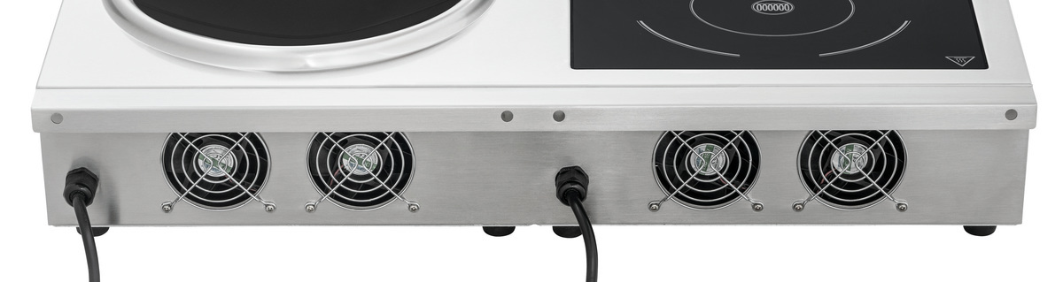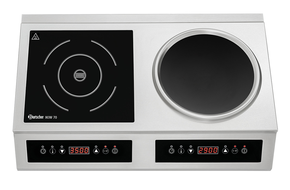 Want to prepare a tasty meal in a wok and sauté the prawns to go with it? Not a problem with this combination tabletop induction cooker and induction wok. Both the power, at 3500 W each, and the timer setting of the two hobs can be controlled separately.