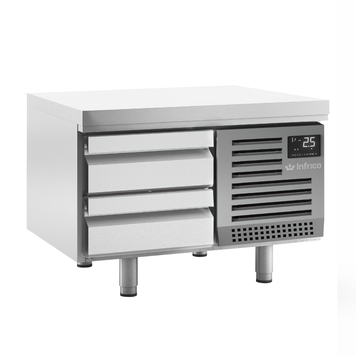• Check iconHigh grade AISI 304 stainless steel exterior & interiorRounded internal corners for easy cleaningDrawers have telescopic slides for complete opening (105mm x 305mm x 508mm)Adjustable legs Brand: INFRICO Size (H x W x D): 650 x 1000 x 700 Weight: 105.0 Finish: Stainless Steel Controller: Digital controller with temp display Refrigerant: R290 Climate Class: 5 Defrost: Automatic Temp Range: -2C/+8C Cooling: Ventilated Power Consumption (W): 200W Gross Capacity: 75 ltr
