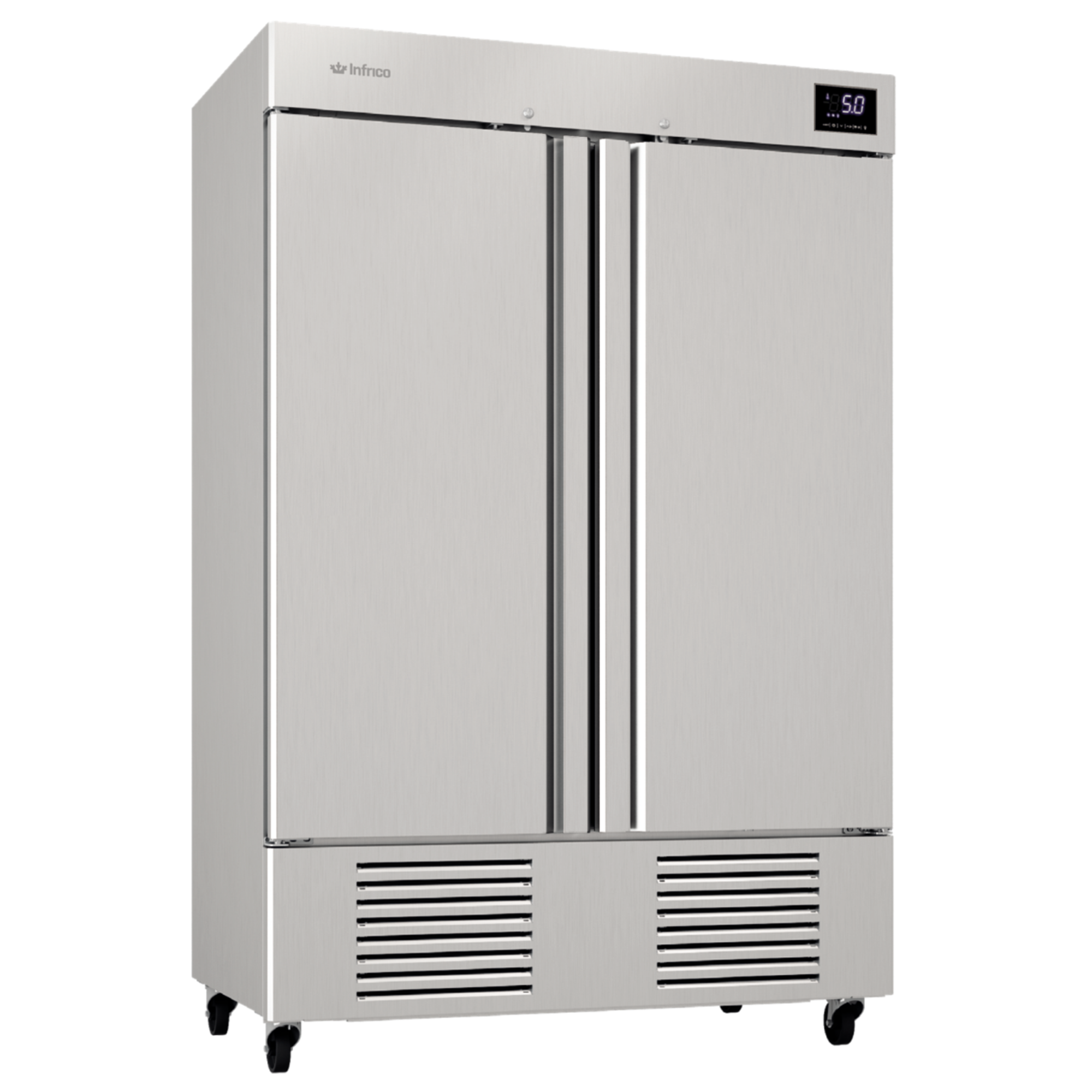 The cabinet is constructed in AISI 430 stainless steel with a galvanised rear panel, designed to stand up to day-to-day commercial use. Wide, rounded internal corners and an internal drain help keep hygiene routines straightforward, while the lift-up control panel improves access to the condenser area during maintenance.