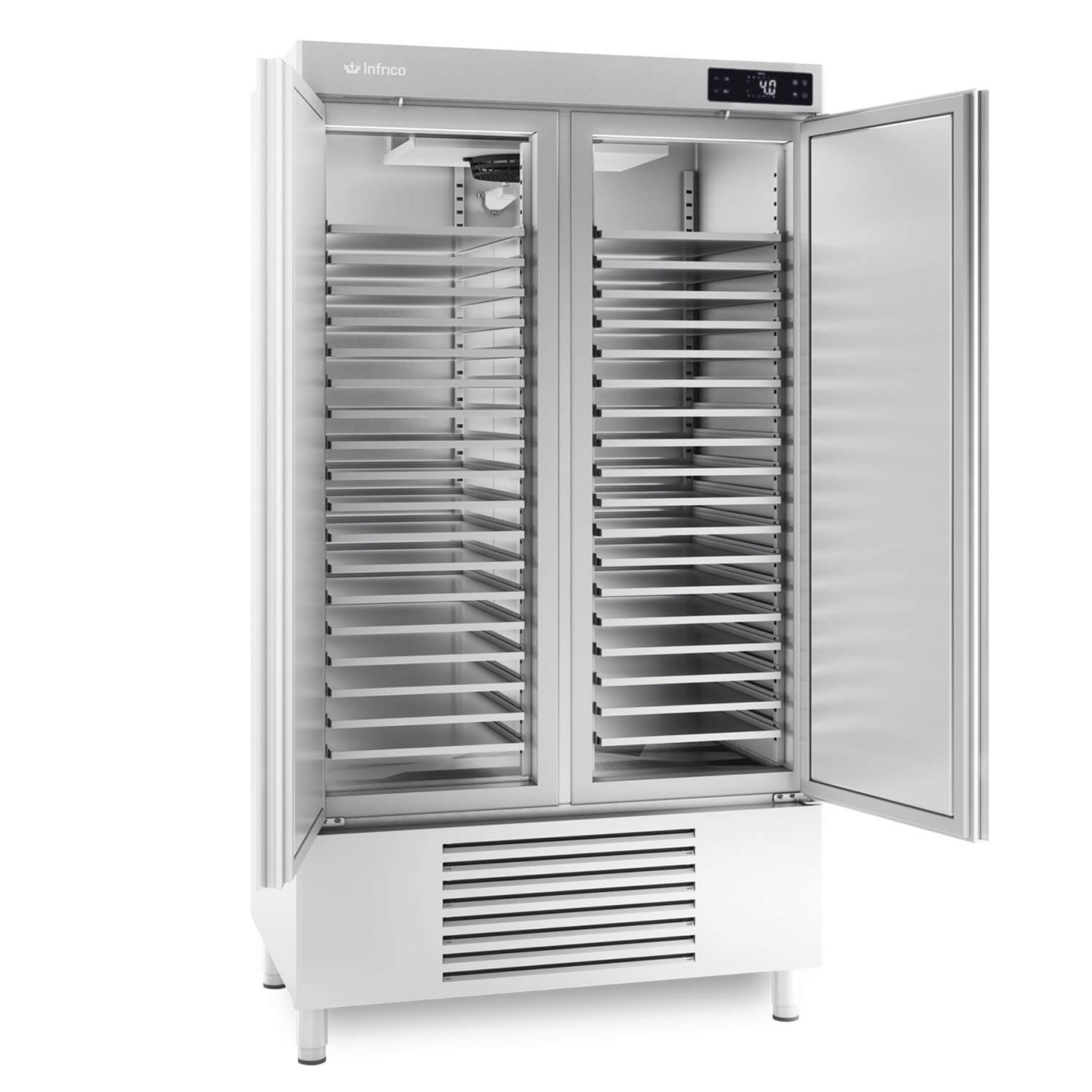 Infrico AN 902 PAST (AN902PAST) is a Reach In from the Nacional 400/900 L series, built for pastry and dessert production where 600×400 Euronorm trays are the daily standard. With a generous 900 L capacity in an upright footprint (W 1124 × D 775 × H 2060 mm), it suits busy hotel pastry sections, cafés and professional kitchens across Ireland that need organised cold storage without sacrificing prep-room space.
