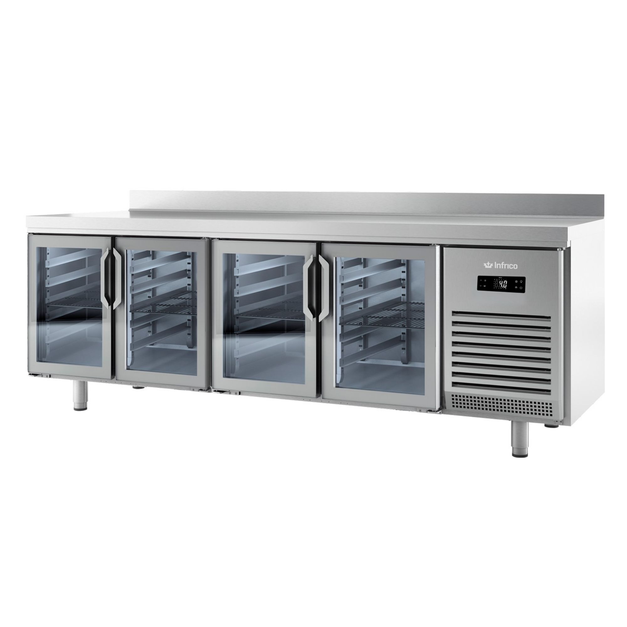 Infrico BMGN 2450 CR (BMGN2450CR) is a glass door refrigerated table from the Undercounters range, built for Series GN1/1 700 layouts. Designed to sit neatly under worktops, it gives chefs clear visibility of stock while keeping GN 1/1 service items organised and within easy reach—ideal for restaurants, cafés and hotel prep areas in Ireland.