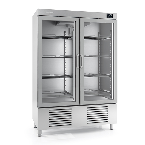 • Check iconHigh grade AISI 304 stainless steel exterior and interiorHeated triple glazed doorSupplied with 4 shelves per door (530 x 400)Internal LED lightingRounded internal corners to aid easy cleaningGlass may appear darker than images shownReplaceable door gasket Brand: INFRICO Size (H x W x D): 2060 x 1385 x 700 Weight: 244.0 Finish: Stainless Steel Controller: Digital controller with temperature display Refrigerant: R290 Climate Class: 4 Defrost: Automatic Temp Range: -18C/-22C Cooling: Ventilated Power Consumption (W): 1744W Gross Capacity: 1110 ltr