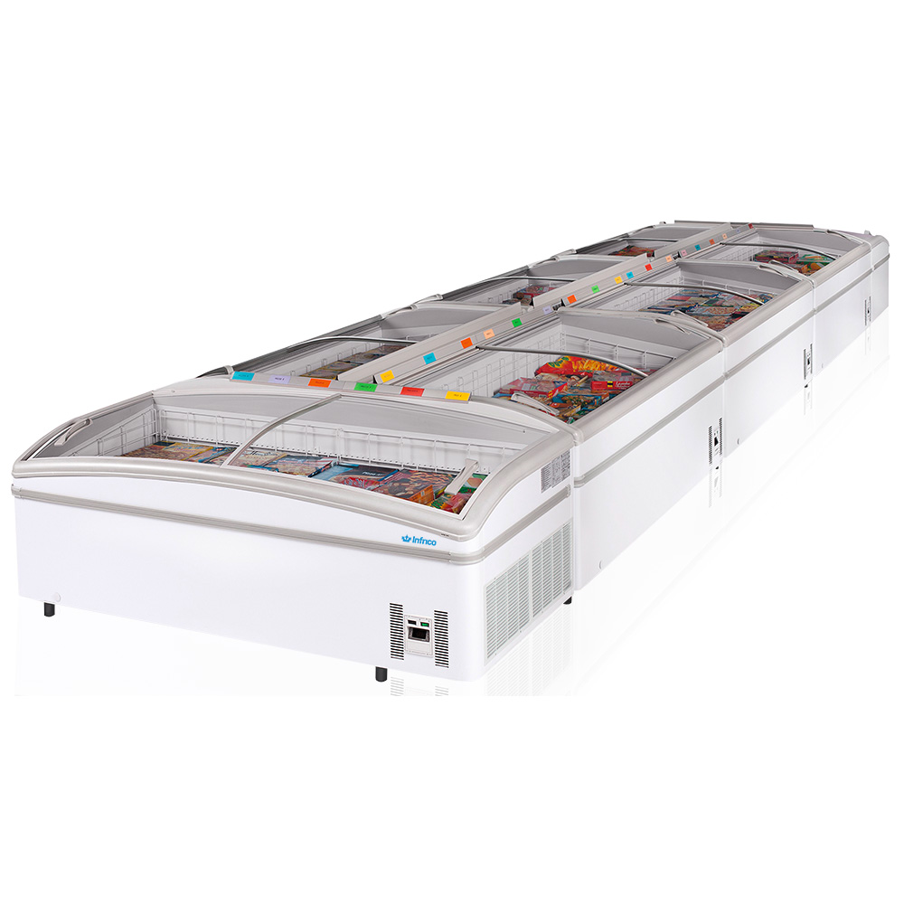 Infrico EHCR2500 DEHC MIXED (EHCR2500DEHC) is a Horeca equipment display cabinet designed as a horizontal freezer with glass lid, ideal where you want strong product visibility alongside dependable cold holding. The curved, sliding glass covers give customers and staff a clear view of the contents, making it a practical choice for front-of-house display and busy service areas in Ireland.