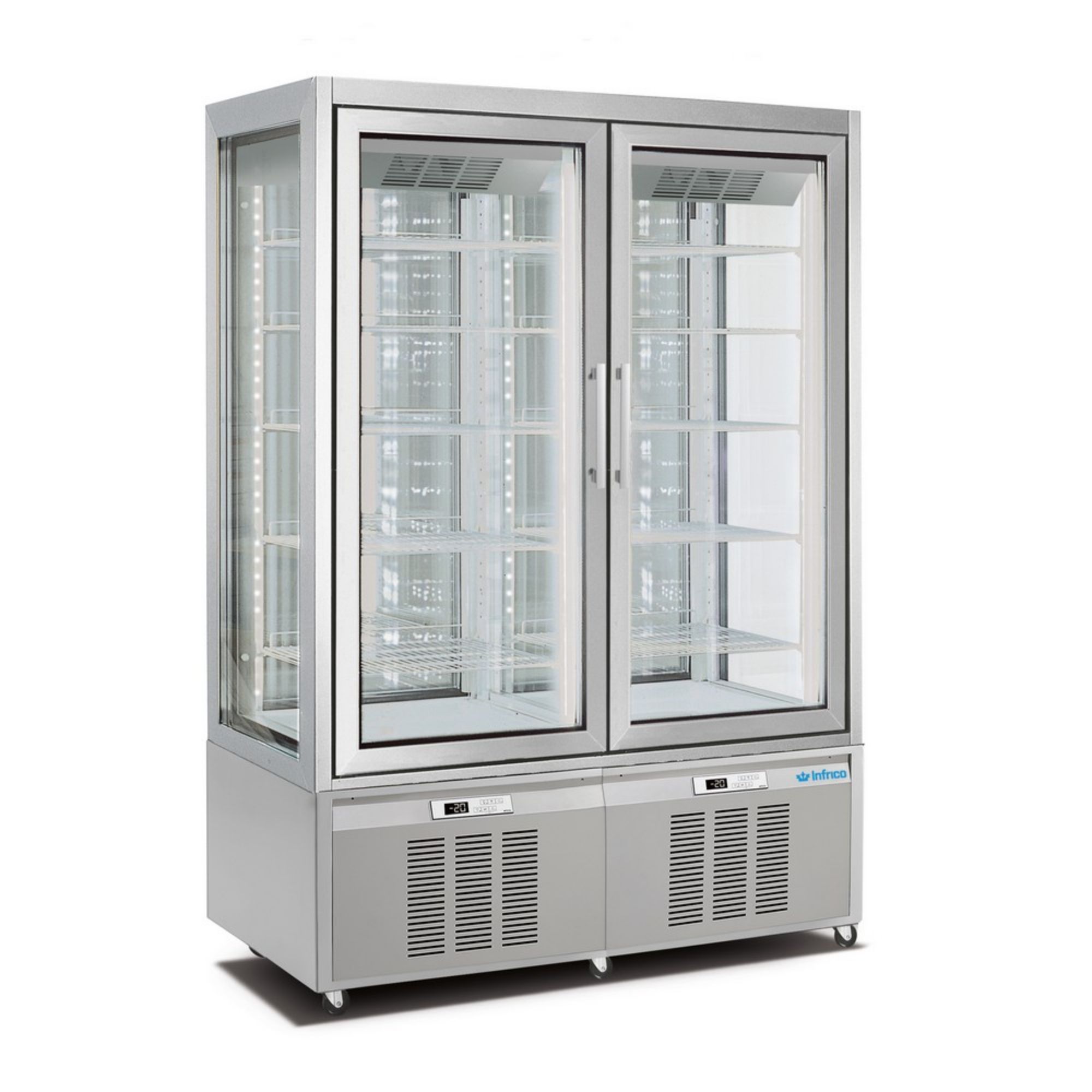 Built for daily commercial use, the LO7703VNP features an anodised aluminium structure with a clean silver finish that suits modern front-of-house spaces. The glass display can be configured from one to four viewing sides, making it a practical option whether you’re fitting out a compact café counter or a more open retail-style dessert area for Irish hospitality venues.