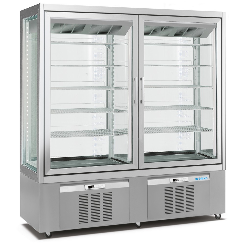 Infrico LO9324VNP (code LO9324VNP) is a versatile HORECA equipment display case within the chillers and freezers category, designed for busy pastry and ice cream service. Its refrigeration system lets you present both pastries and ice cream in the same cabinet by simply adjusting the thermostat to suit what you’re serving on the day—ideal for cafés, hotels and dessert counters in Ireland that need flexibility without changing equipment.
